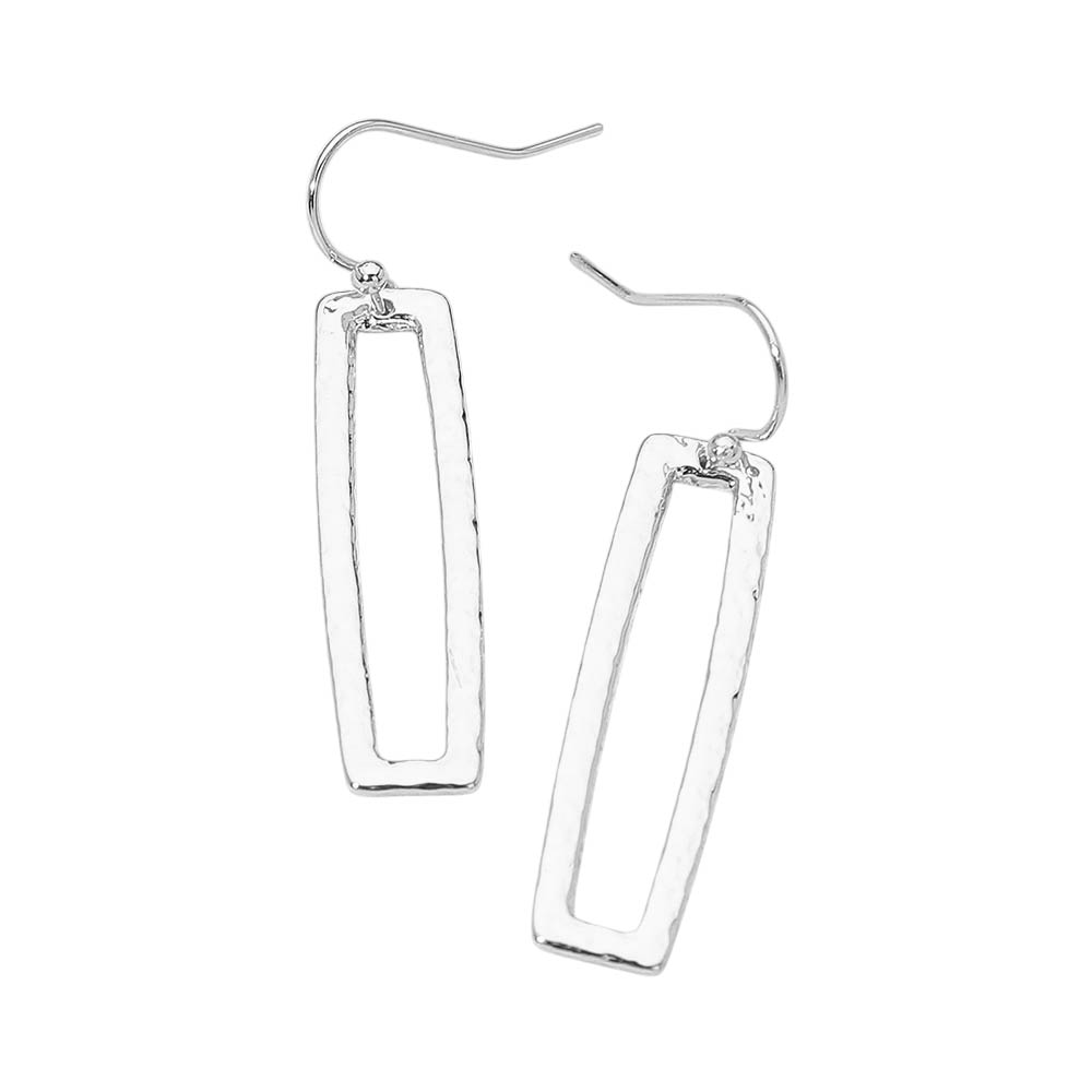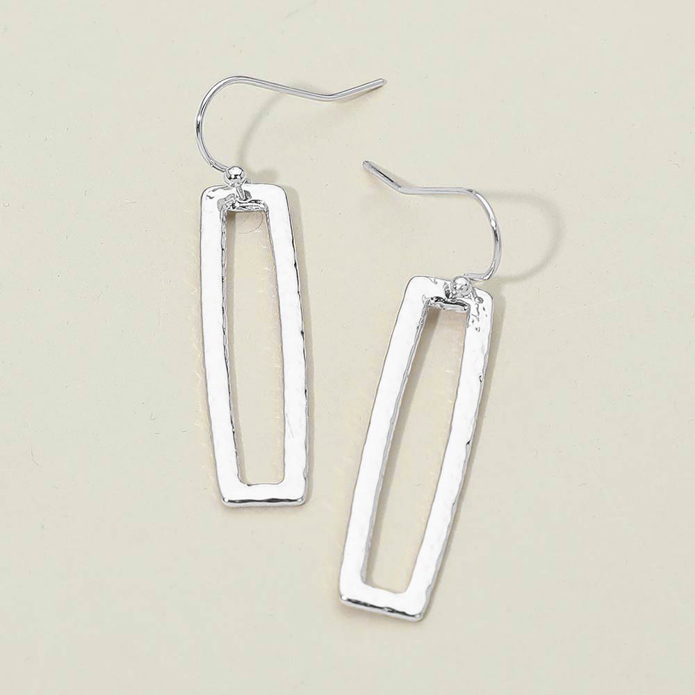 • Modern open rectangle drop earrings with a sleek elongated silhouette that adds effortless movement and style. Designed for everyday wear or elevated looks, these lightweight earrings pair easily with casual outfits, workwear, or evening styles for a clean, contemporary statement.