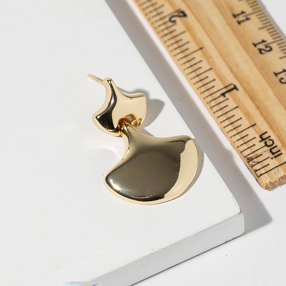 • Modern abstract fan shape drop stud earrings featuring a smooth sculptural silhouette with a subtle dangle design. A stylish choice for everyday wear or elevated looks, ideal for boutiques seeking contemporary, minimalist jewelry with versatile appeal and trend-forward elegance.