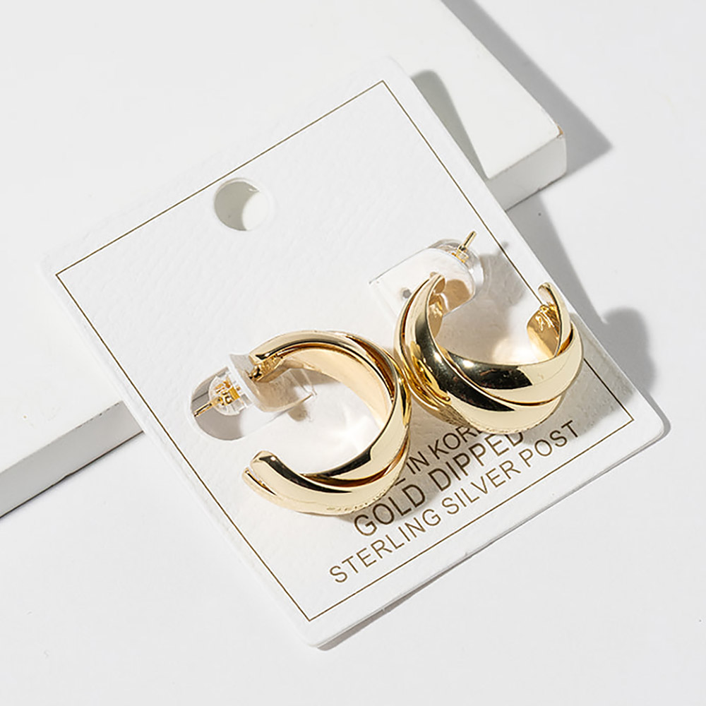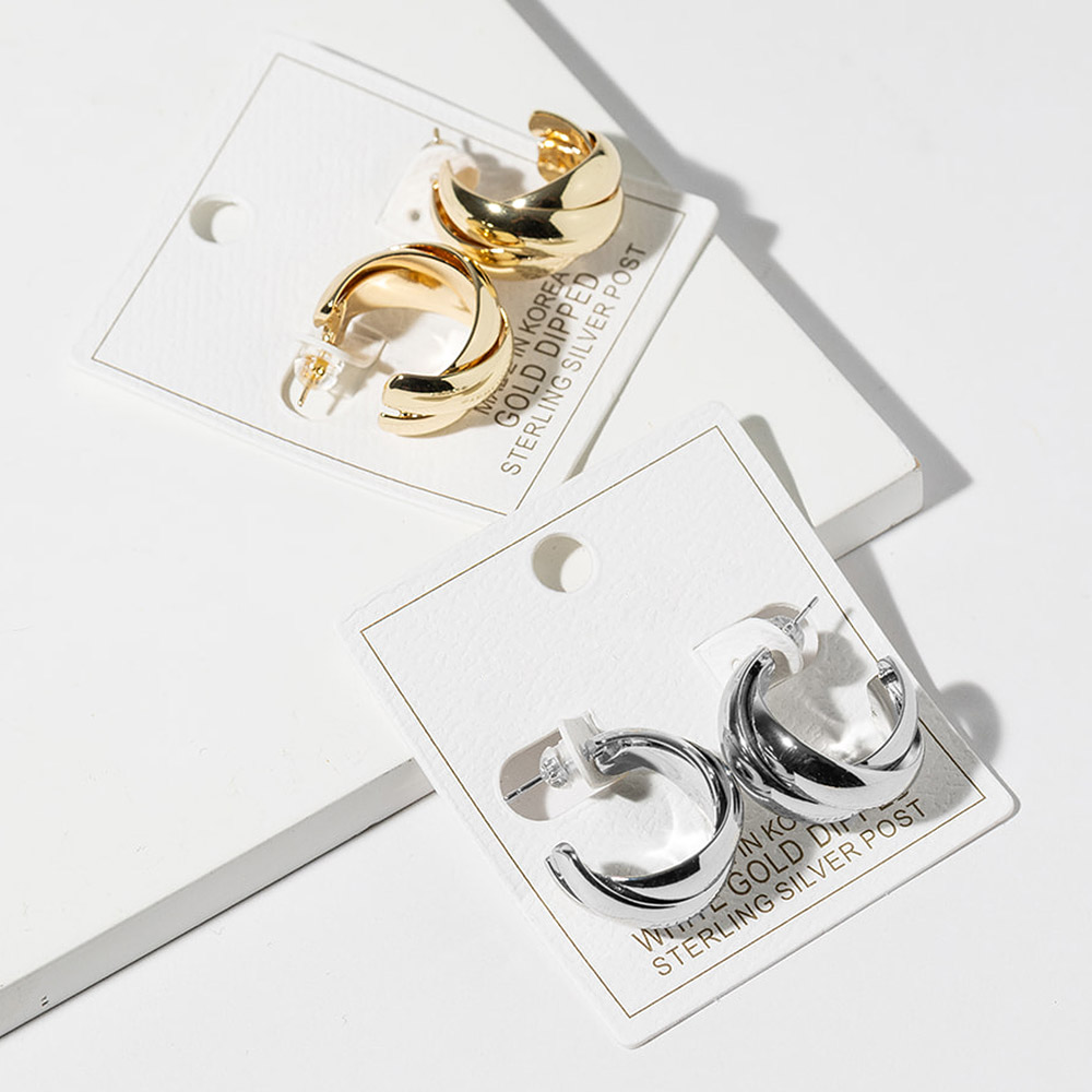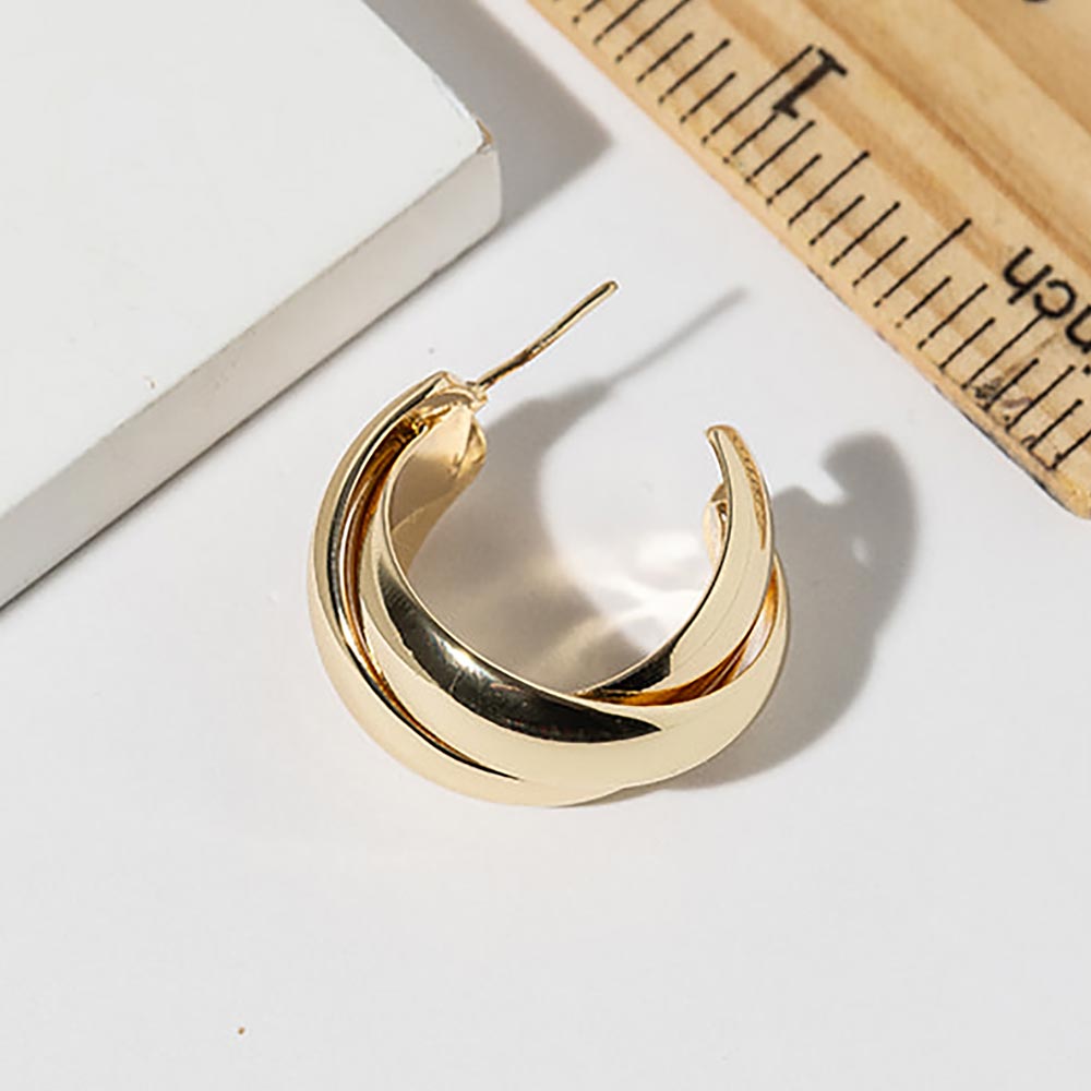 • Stylish hoop stud earrings featuring a layered curved design with smooth overlapping contours and a bold yet wearable silhouette. Perfect for everyday styling or elevated looks, these earrings deliver modern dimension, sculptural appeal, and versatile elegance that complements casual outfits, office wear, and refined fashion collections.