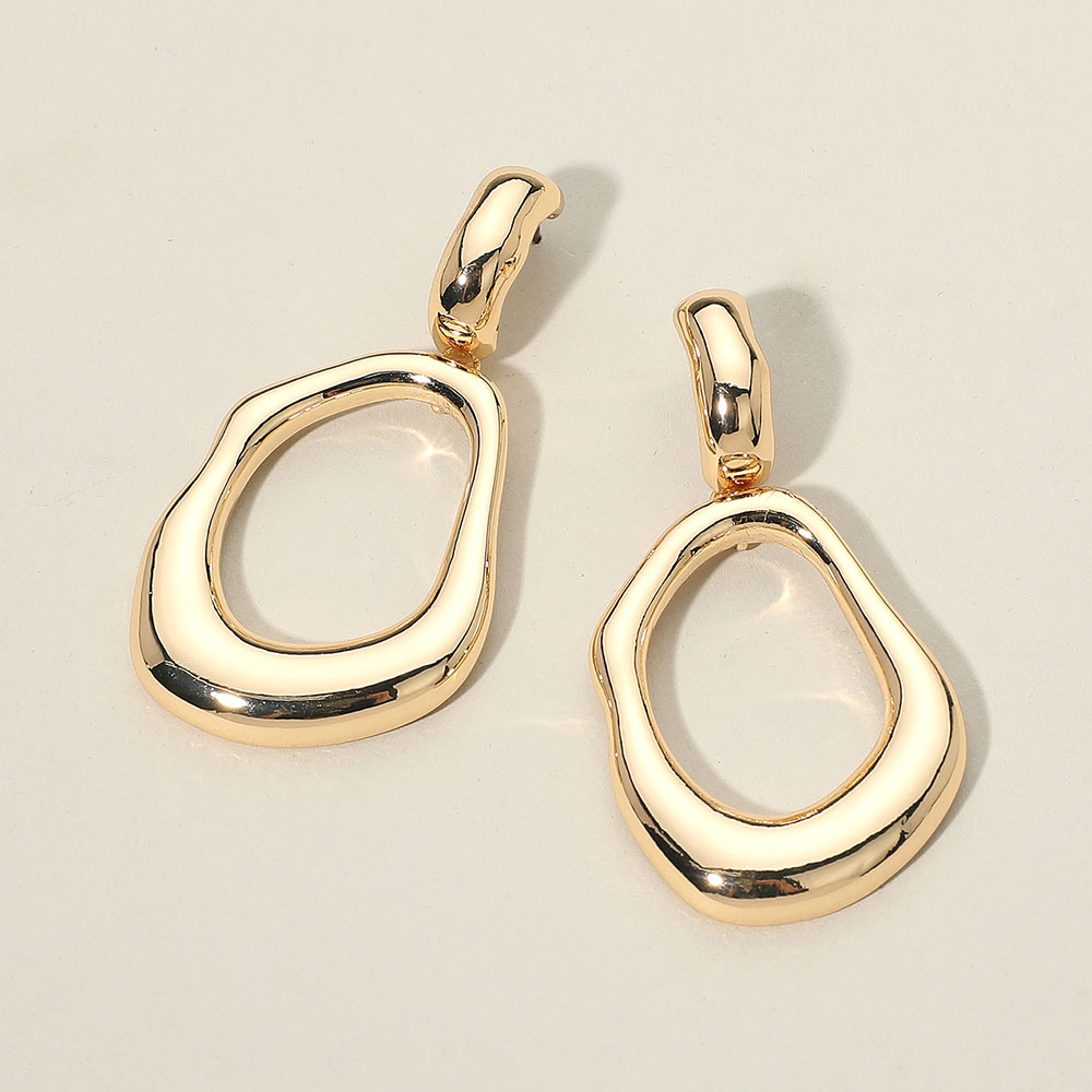 Details • Size : 1.25" X 2.3" • Post Back • Elevate your style with these open abstract drop earrings crafted with smooth, fluid contours for a modern sculptural look. Their freeform silhouette brings artistic charm to everyday wear and statement outfits alike, offering an effortlessly chic accessory with a contemporary edge. • Lead and Nickel Compliant • Made In Korea • Gold Dipped