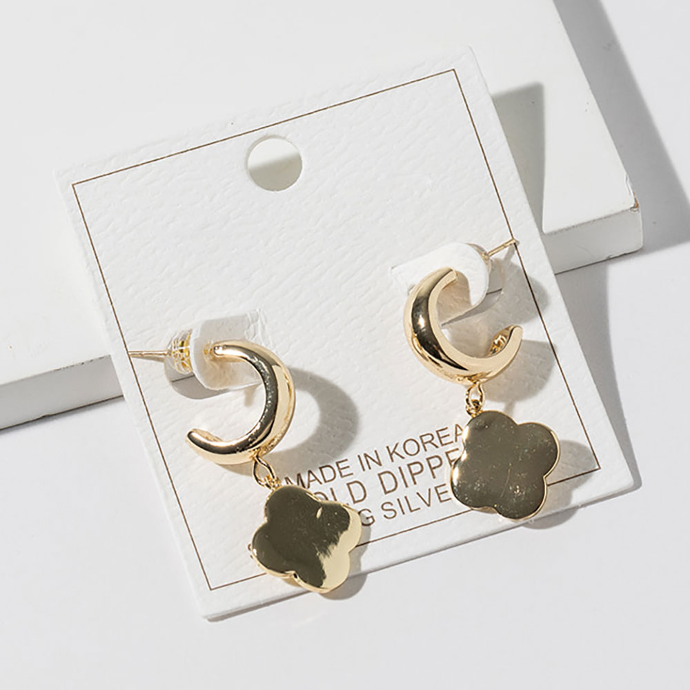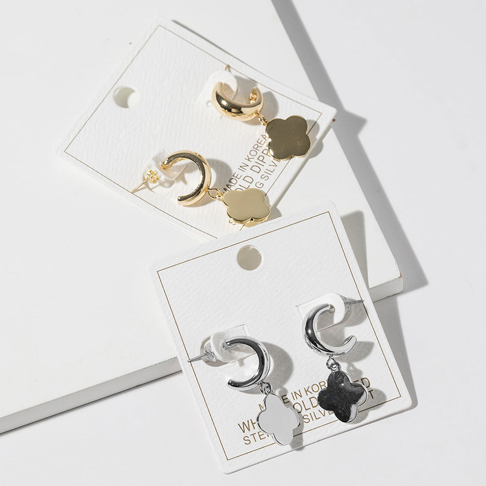 • Chic hoop drop earrings featuring a sleek quatrefoil charm silhouette for a polished, everyday-to-evening look. Designed to elevate casual outfits or complement dressy styles, these earrings offer a timeless accent ideal for gifting, seasonal collections, or effortless accessorizing.