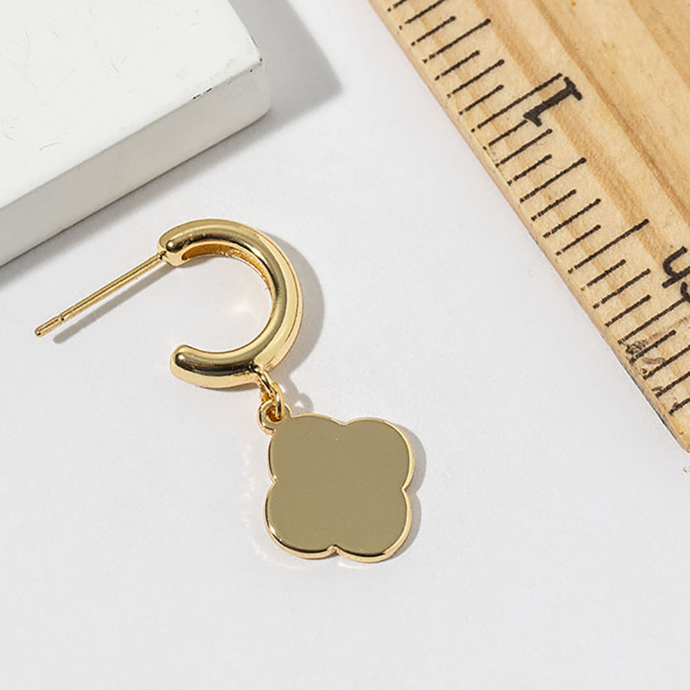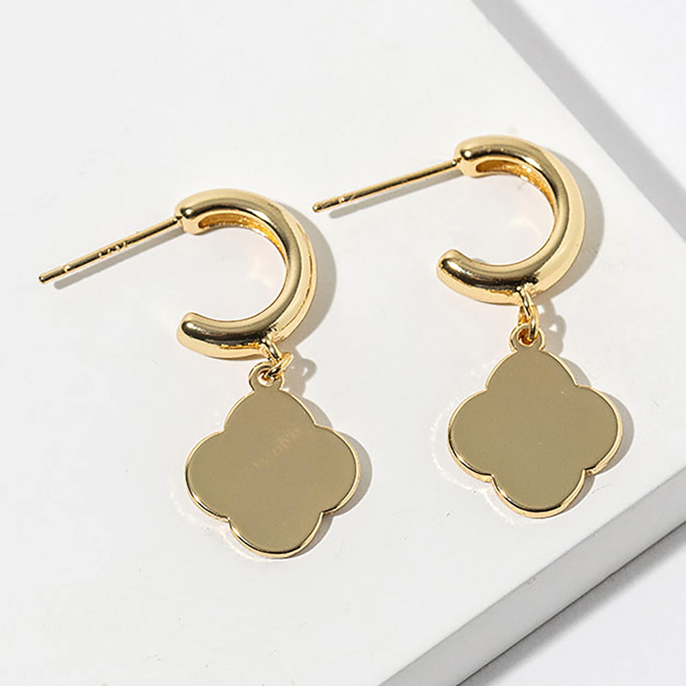 • Modern hoop drop earrings featuring a smooth quatrefoil charm silhouette that adds a refined, minimalist accent to any look. Designed for easy everyday wear, these earrings pair effortlessly with casual outfits or dressier styles, making them ideal for gifting and versatile retail collections.