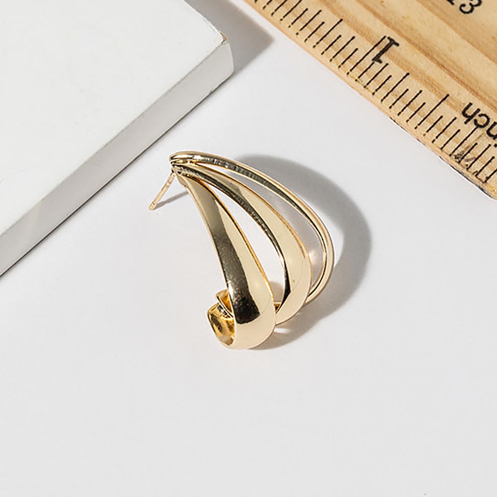 Details • Size : 0.75" X 1.1" • Modern stud earrings featuring a sculpted teardrop silhouette with layered curved detailing and a smooth polished finish. Designed to elevate everyday looks and refined outfits, these statement studs offer dimensional style, elegant contours, and versatile appeal, making them a standout addition to any contemporary jewelry collection. • Gold Dipped • Lead and Nickel Compliant • Made In Korea • Sterling Silver Post