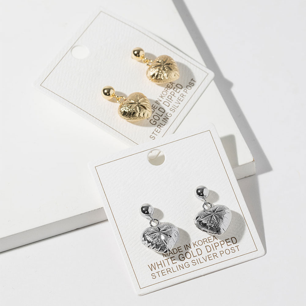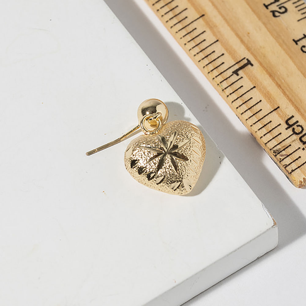 • Heart charm dangle earrings featuring a dimensional textured surface and classic drop silhouette. Designed to add subtle shine and movement, this versatile heart motif works for everyday wear, gifting, and seasonal collections. Ideal for boutiques seeking timeless romantic accessories with broad customer appeal.