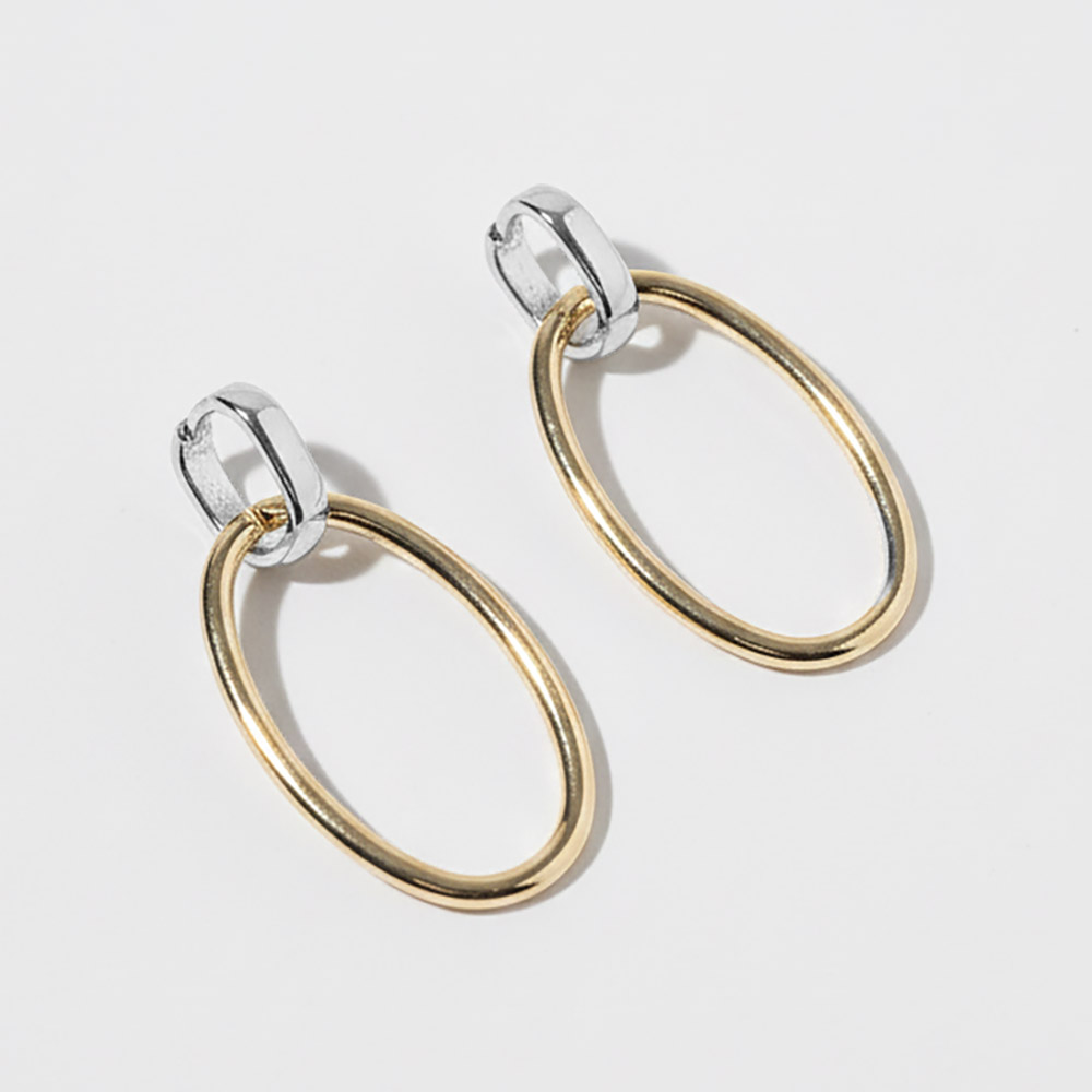Details • Size : 0.6" X 1.3" • Sleek oval hoop earrings featuring a refined interlinked accent that adds subtle movement and modern character. Designed for everyday wear or elevated styling, this versatile silhouette pairs easily with layered looks and curated collections, making it an ideal choice for boutiques, gifting assortments, and trend-forward jewelry displays. • Gold Dipped • Lead and Nickel Compliant • Made In Korea • Sterling Silver Post