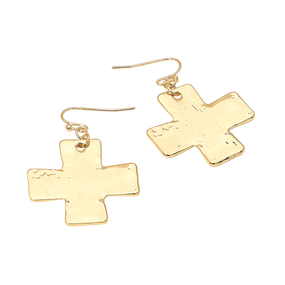 Hammered Metal Cross Dangle Earrings