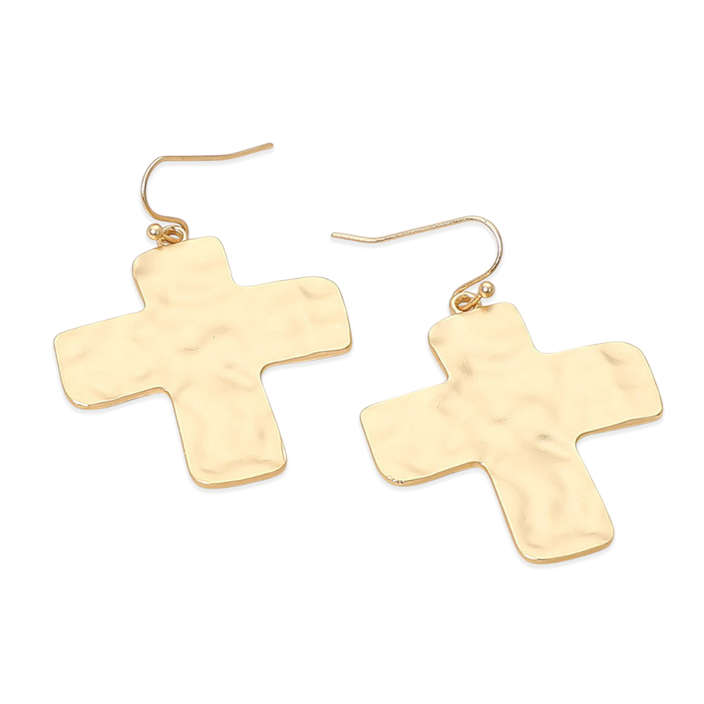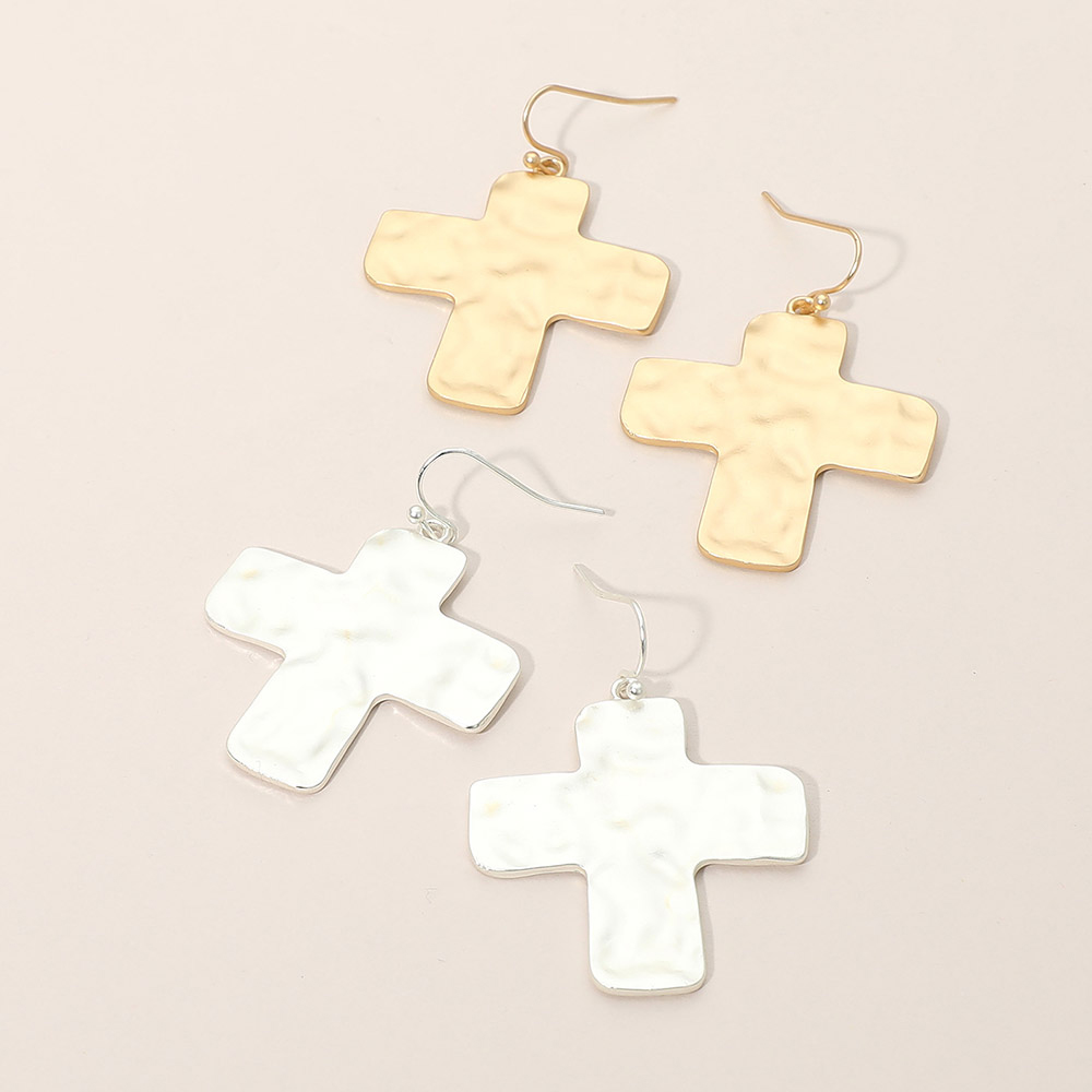 Details • Size : 1.4" X 1.8" • Fish Hook Back • These cross drop earrings feature a softly textured silhouette with a timeless, faith-inspired design that adds meaning and style to everyday looks. Lightweight and easy to wear, they are ideal for boutique collections, gift selections, and customers seeking classic symbolic accessories. • Lead and Nickel Compliant