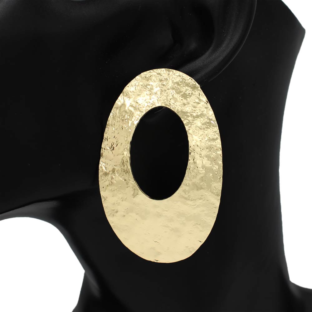 Hammered Metal Cutout Oval Statement Earrings