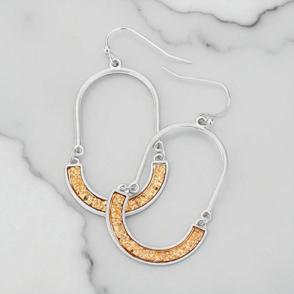 18K Gold Plated Brass Metal Ball Open Oval Earrings