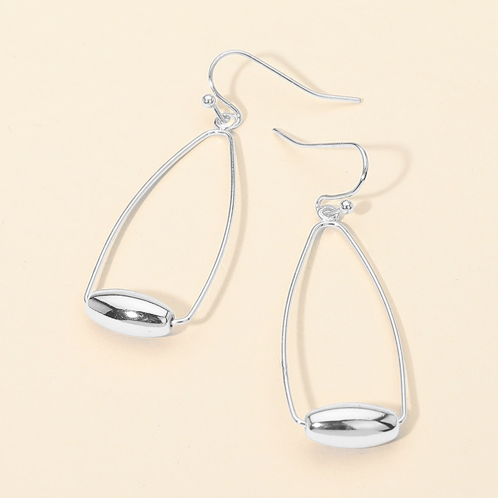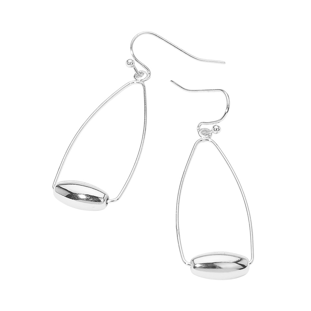 Details • Size : 0.7" X 2" • Fish Hook Back • These minimalist teardrop frame dangle earrings feature a sleek open design with a smooth oval accent that adds modern elegance. Lightweight and versatile, they transition effortlessly from day to night, making them a refined choice for both casual and formal occasions. • Lead and Nickel Compliant