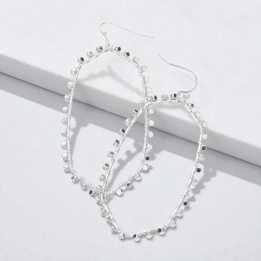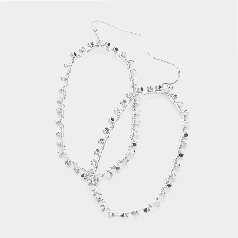 Metal Cube Trimmed Open Hexagon Dangle Earrings