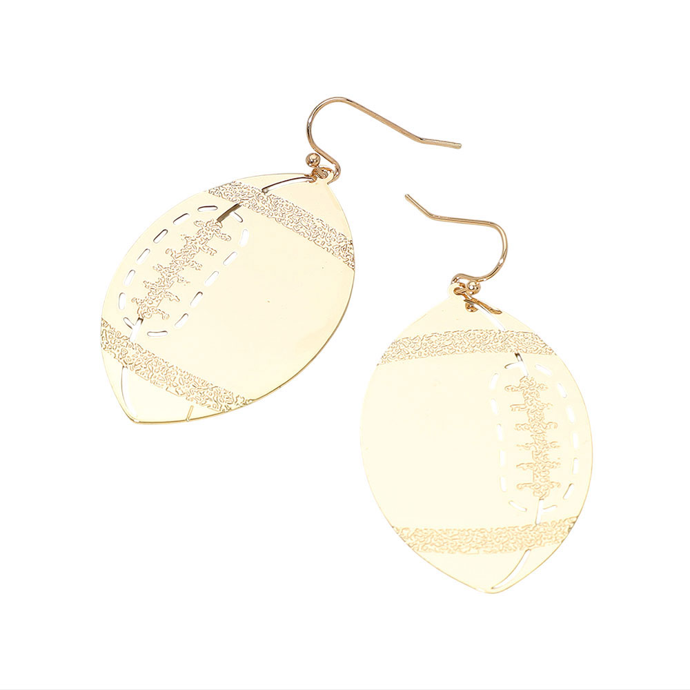 Details • Size : 1.25" X 2.3" • Fish Hook Back • Show your team spirit in style with these football cutout dangle earrings. Designed with a sleek openwork pattern that highlights the iconic ball shape, they bring a sporty yet chic vibe to your outfit. Perfect for game days, tailgates, or gifting to any football enthusiast. • Brass • Lead and Nickel Compliant