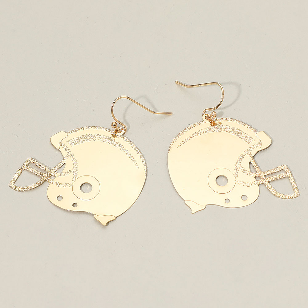 Details • Size : 1.5" X 2" • Fish Hook Back • Lightweight football helmet dangle earrings with etched detailing, perfect for gameday outfits, tailgate looks, and spirited fan accessories. Stylish sports-themed statement design for showing team pride at any event. • Brass • Lead and Nickel Compliant