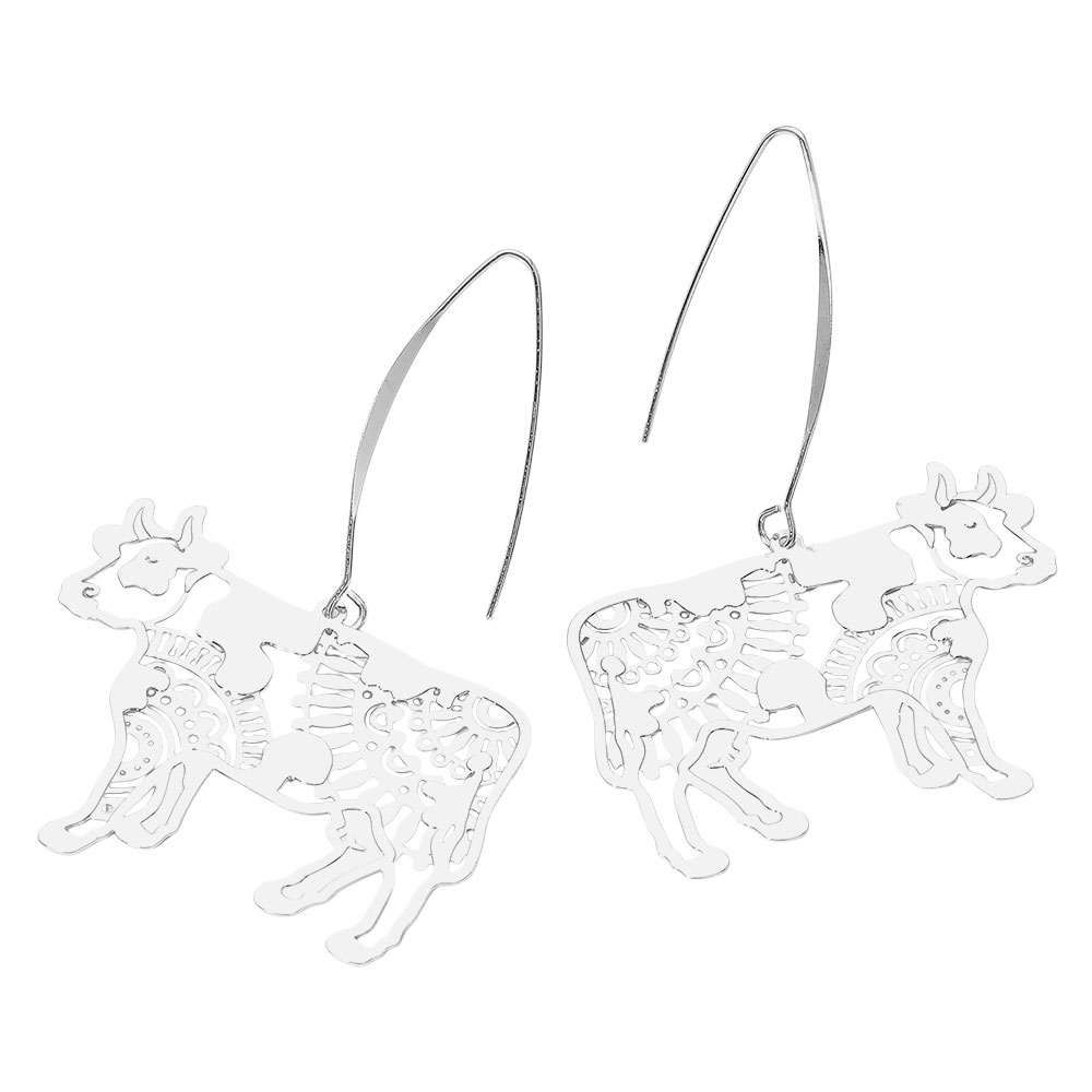 Metal Filigree Cow Dangle Earrings Metal Filigree Cow Dangle Earrings