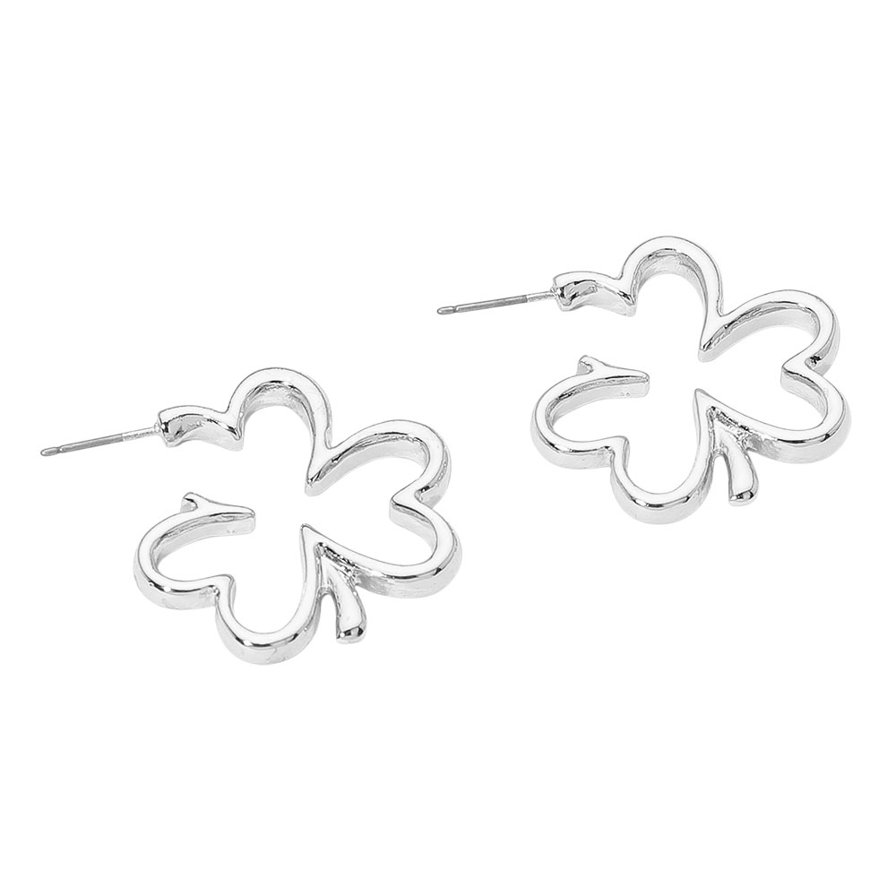 Metal Open Shamrock Clover Hoop Earrings