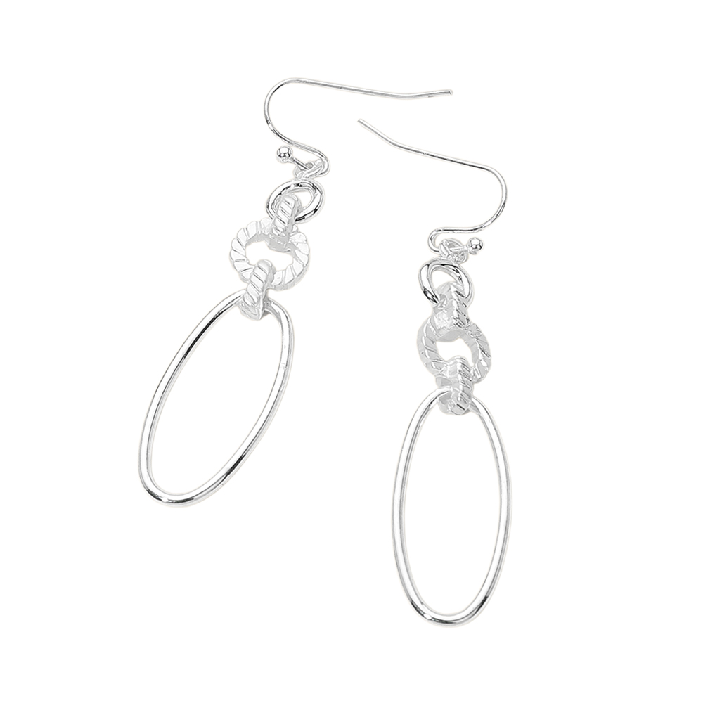 Details • Size : 0.5" X 2.25" • Fish Hook Back • Elevate any look with these metal oval drop earrings featuring textured accents and fluid linked shapes. Their lightweight, elegant design offers versatile styling for both casual days and refined evenings, adding a polished, modern touch to your accessory collection. • Lead and Nickel Compliant