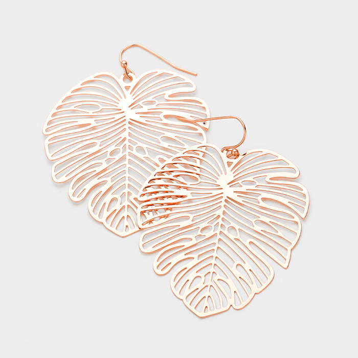 Metal Tropical Leaf Dangle Earrings