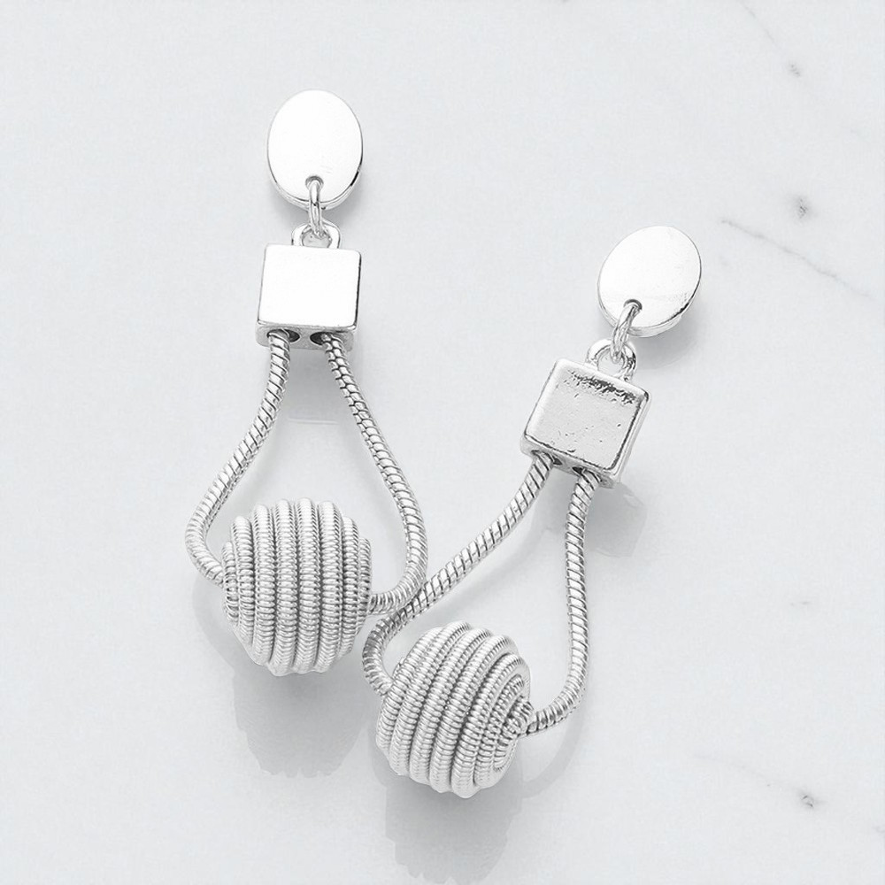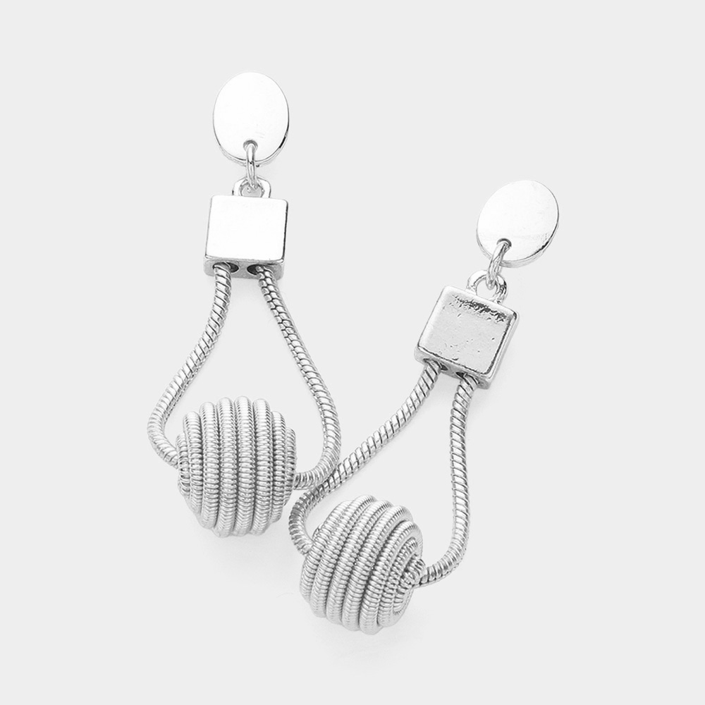 Metal Wire Ball Pointed Abstract Dangle Earrings