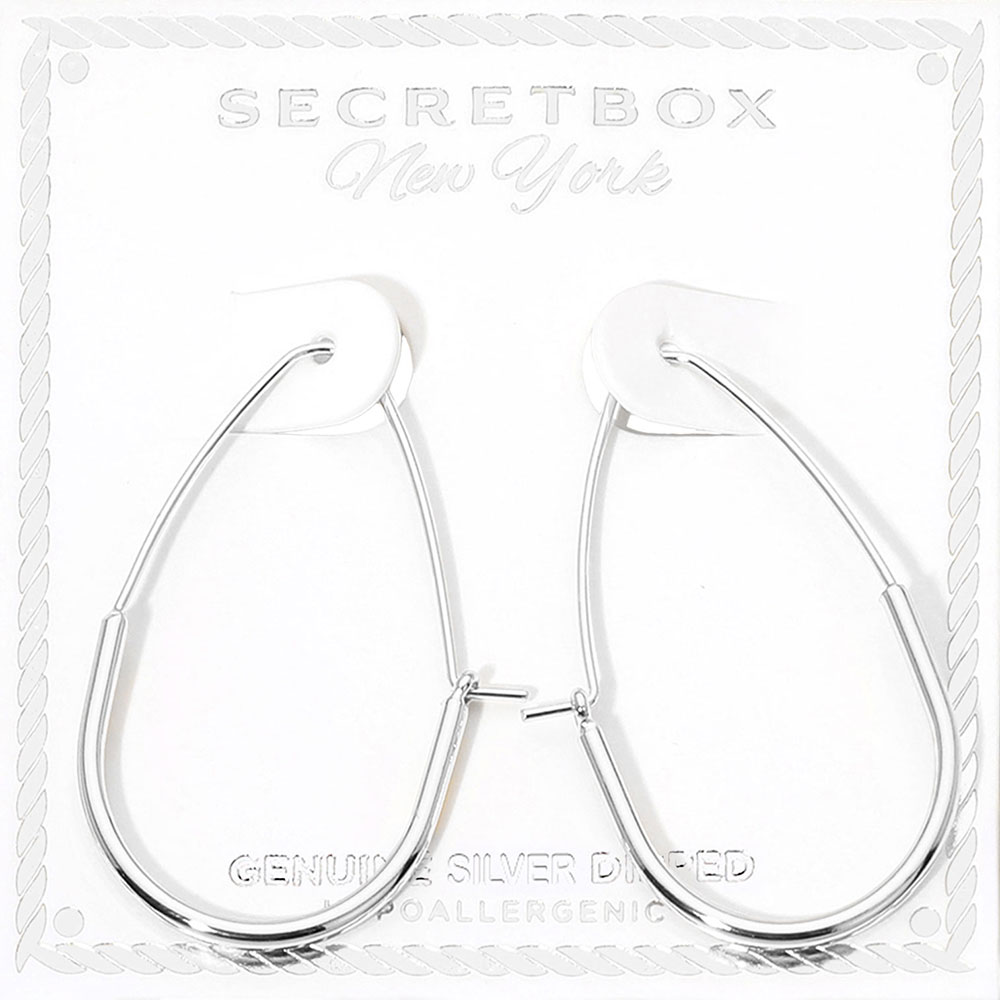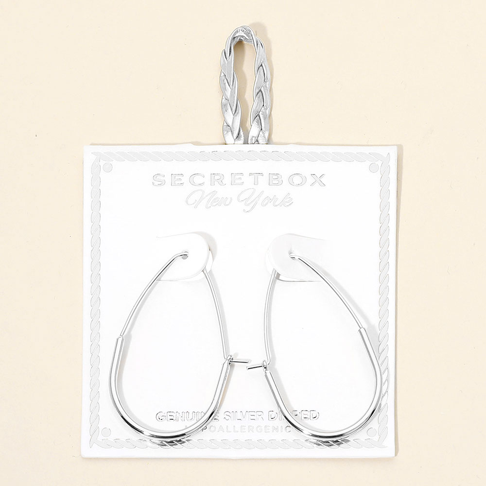 SECRET BOX_Genuine Silver Dipped Elongated Oval Hoop Earrings SECRET BOX_Genuine Silver Dipped Elongated Oval Hoop Earrings