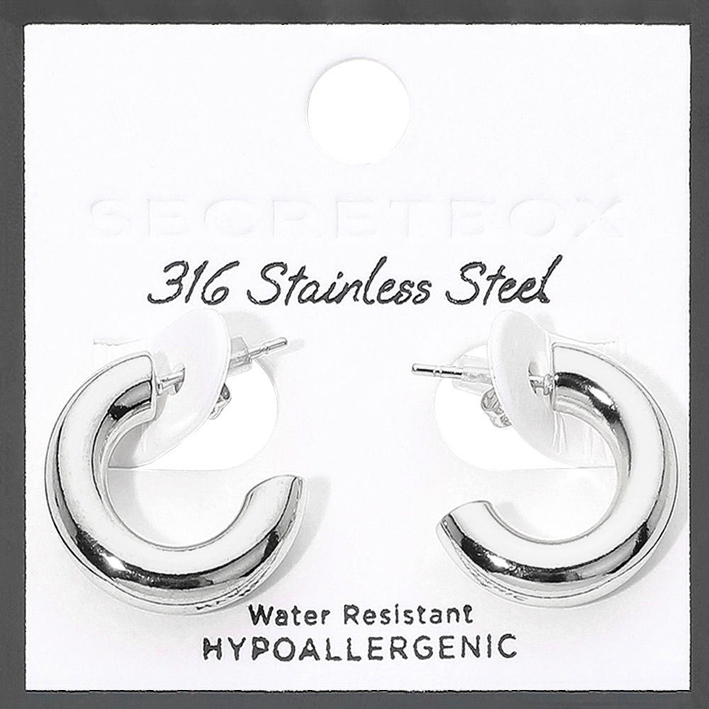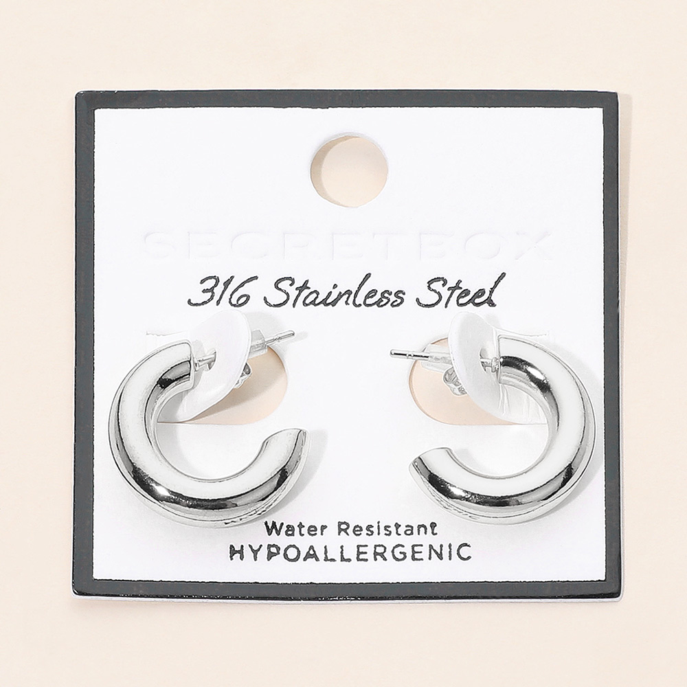 SECRET BOX_Stainless Steel Think Hoop Earrings