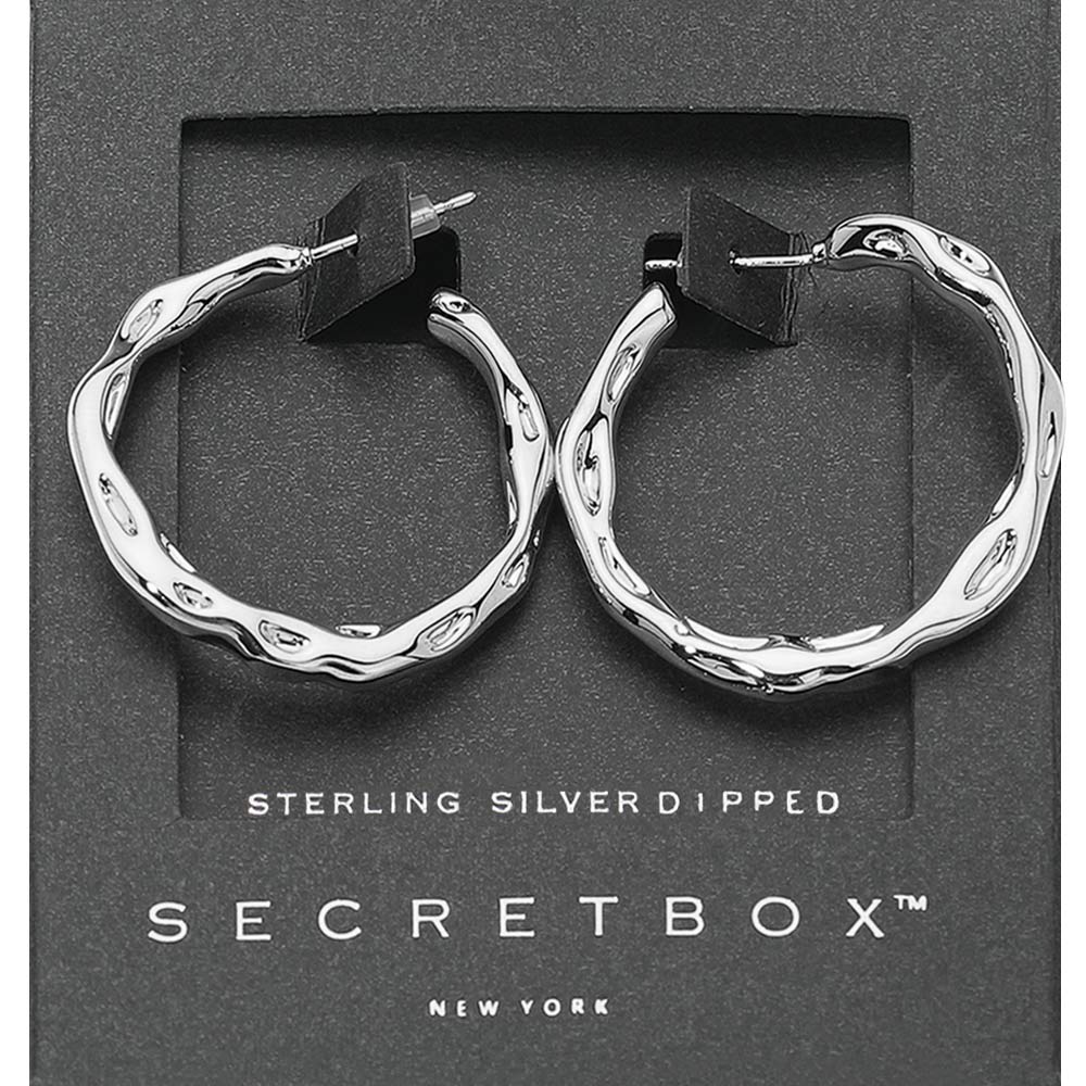 Details • Size : 1.25" X 1.25" • Post Back • Elevate your style with these textured hoop earrings featuring a modern organic design. Their bold yet elegant look makes them perfect for both casual and formal wear, offering a unique twist on the classic hoop for everyday sophistication. • Sterling Silver Dipped