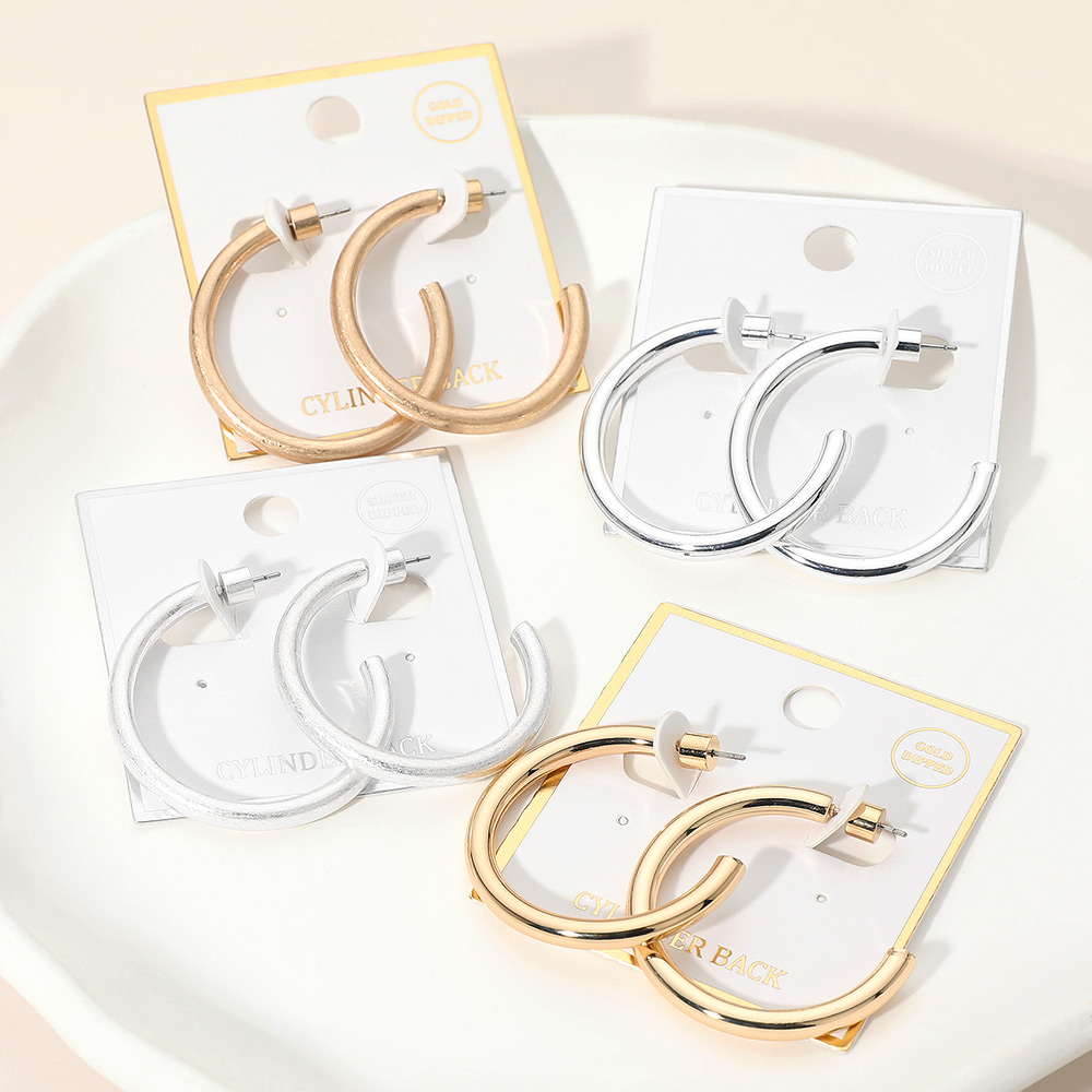 Details • Size : 1.5" X 1.5" X 0.2" • Cylinder Back • Bold round hoop earrings featuring a chunky open-circle design with secure cylinder backs. Worned out finish creates a modern statement look. Lightweight, easy to style, and perfect for elevating everyday or dressy outfits with a clean, contemporary touch. • Lead and Nickel Compliant • Sterling Silver Dipped