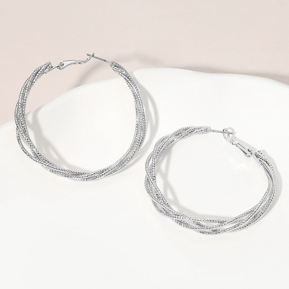 • Elegant layered hoop earrings designed with multiple intertwined strands that create depth and visual interest. A refined yet versatile accessory ideal for daily wear or special occasions, offering a polished statement that pairs effortlessly with casual outfits, work looks, and evening ensembles. Perfect for boutique jewelry assortments and gifting displays.