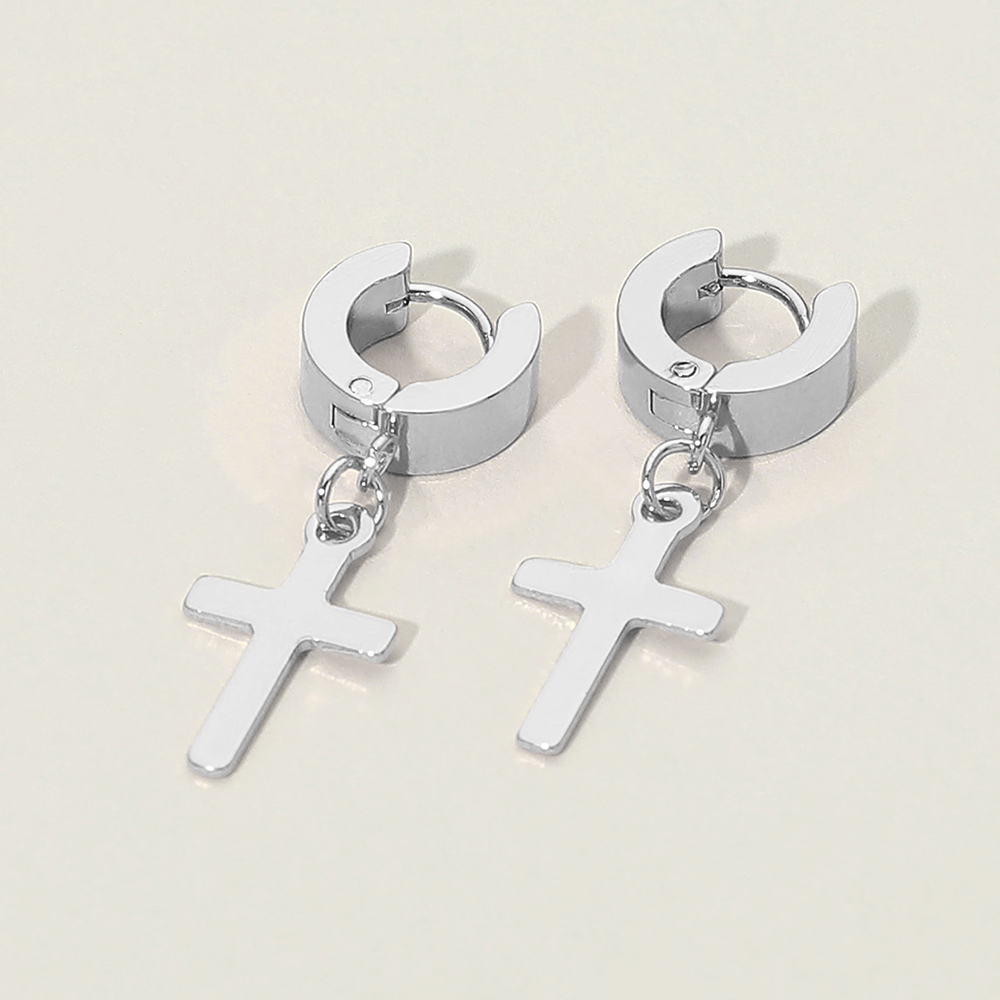 Stainless Steel Cross Charm Dangle Mini Huggie Hoop Earrings