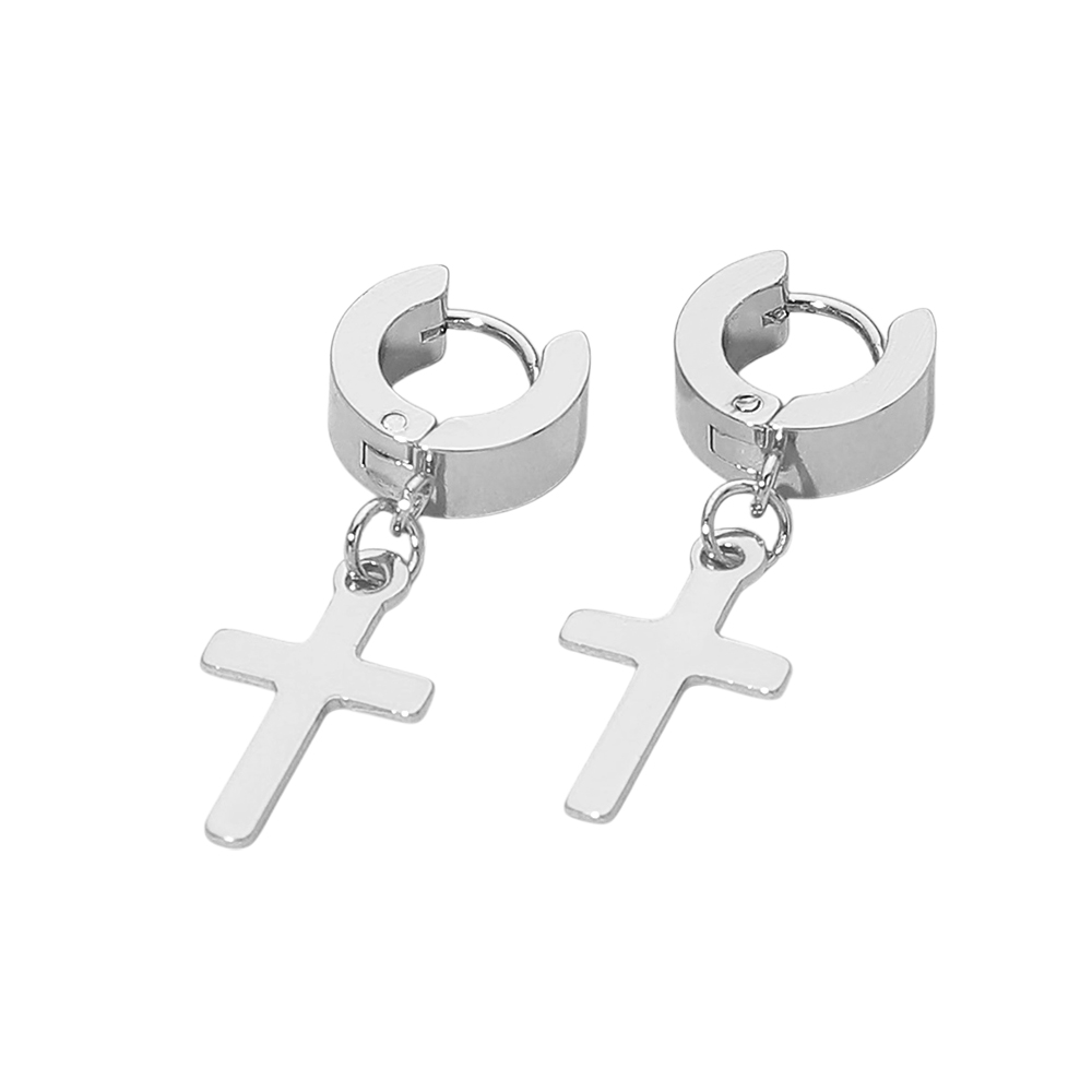 Details • Size : 0.4" X 1.25" • Huggie Back • These cross charm huggie hoop earrings feature a clean, minimalist silhouette with a dangling cross accent for subtle statement appeal. Designed to sit comfortably on the ear, they offer easy styling for everyday wear or meaningful gifting. Perfect for layering with other earrings or wearing alone, this versatile pair adds timeless symbolism and modern edge to curated jewelry collections and trend-forward assortments. • Hypoallergenic • Lead and Nickel Compliant • Stainless Steel