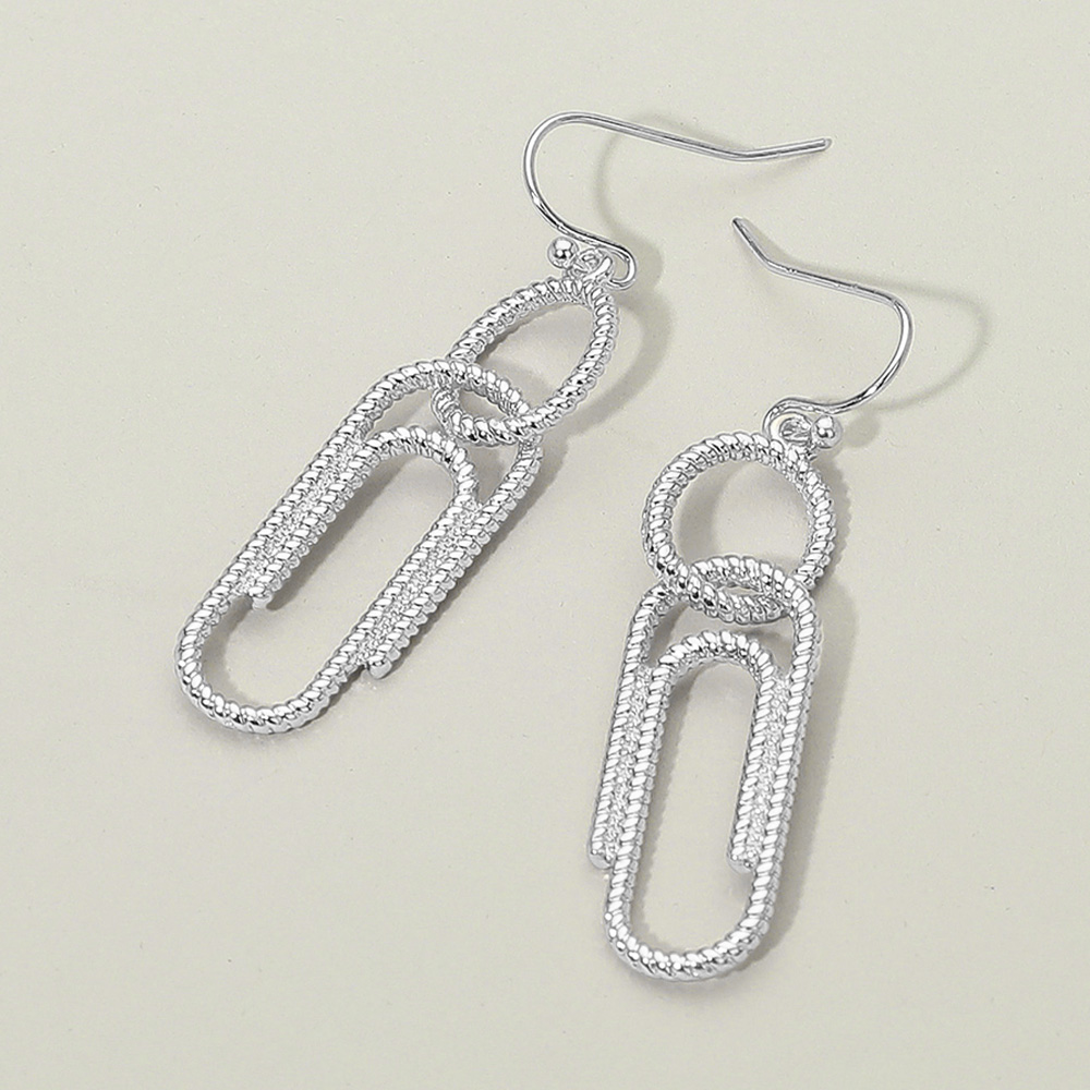 Textured Metal Geometric Link Drop Dangle Earrings Textured Metal Geometric Link Drop Dangle Earrings