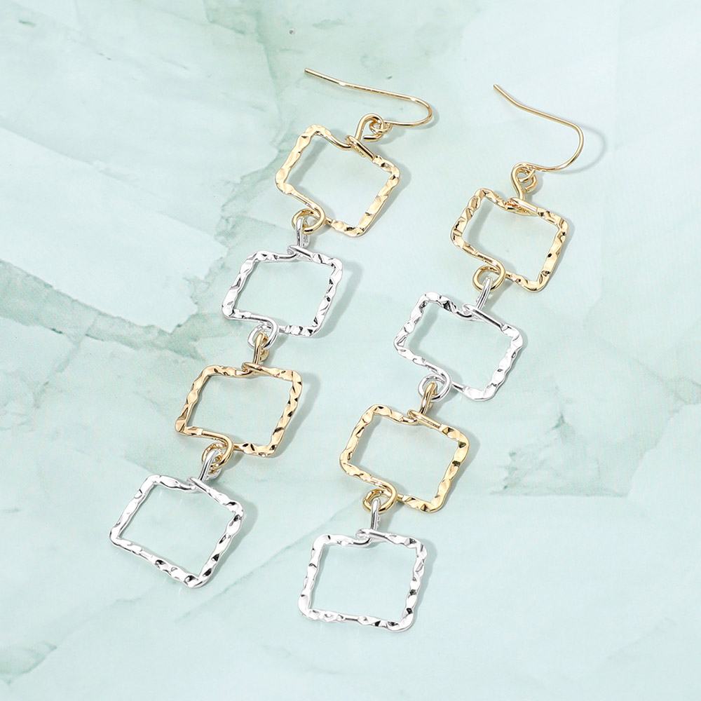 Textured Metal Geometric Open Square Link Drop Earrings Textured Metal Geometric Open Square Link Drop Earrings Textured Metal Geometric Open Square Link Drop Earrings