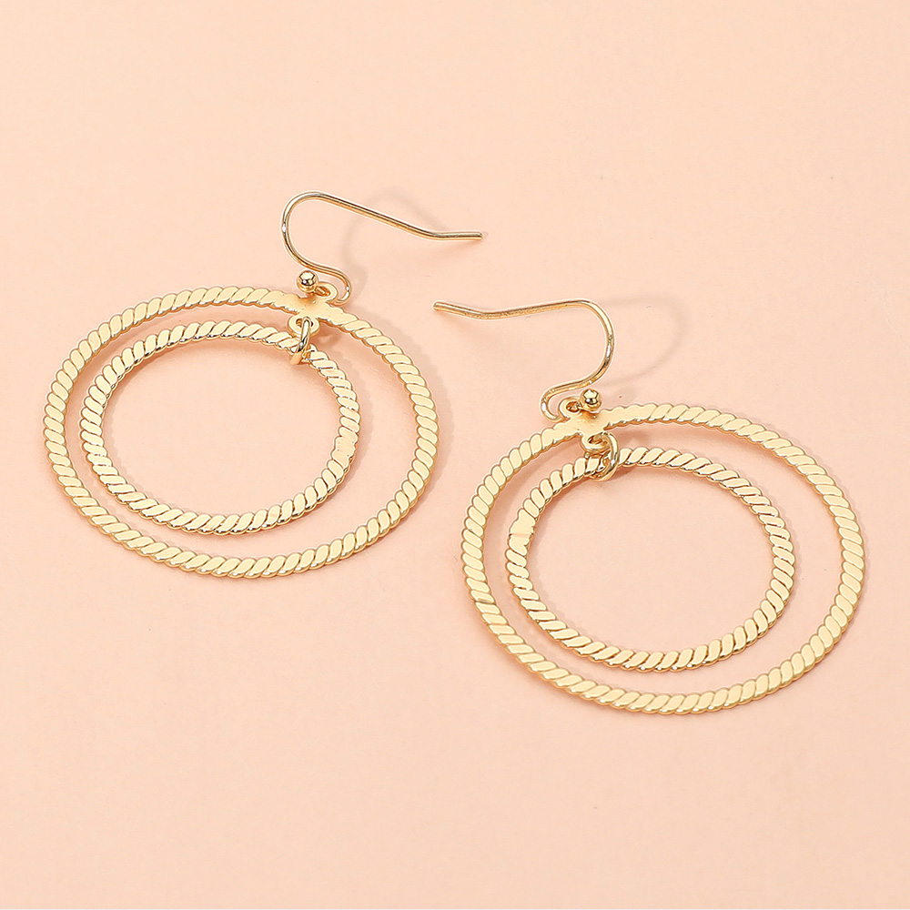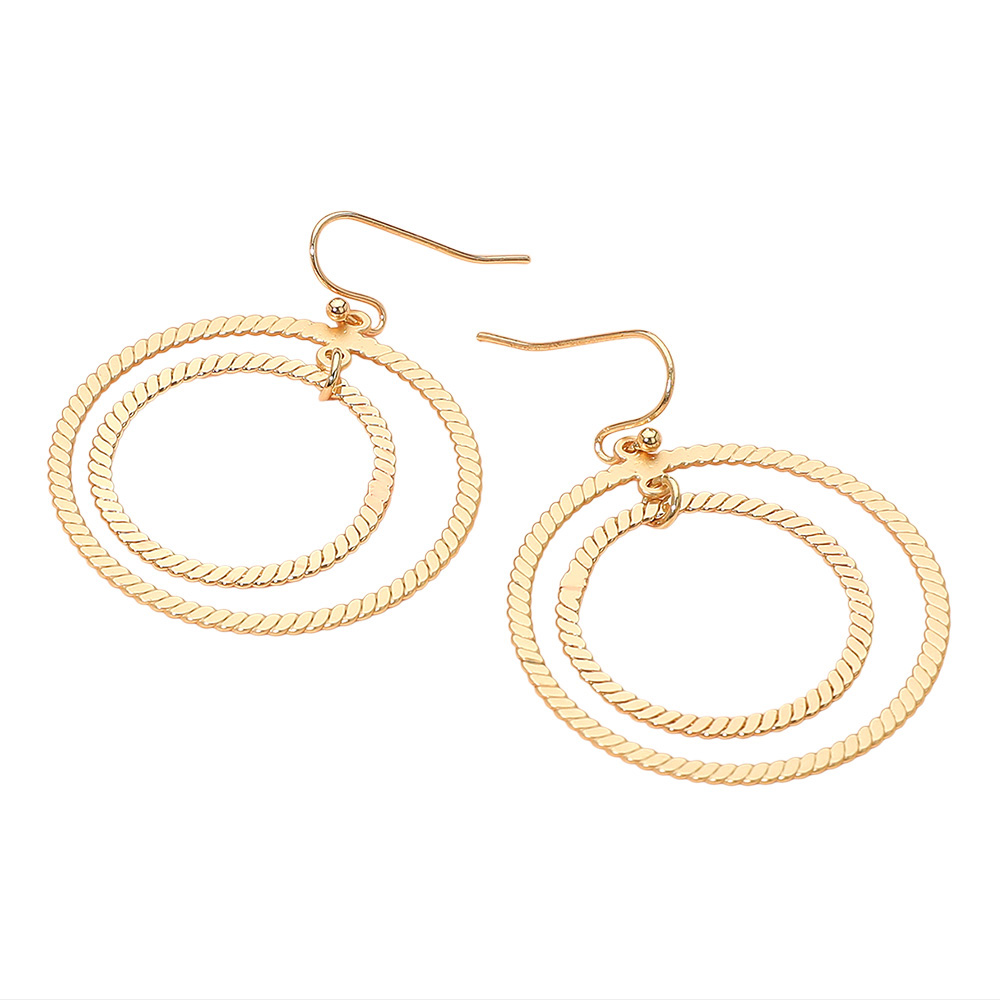 • Chic double hoop dangle earrings featuring a textured finish and lightweight design. A versatile accessory that adds a stylish touch to everyday outfits or special occasion looks.