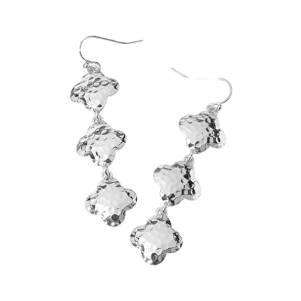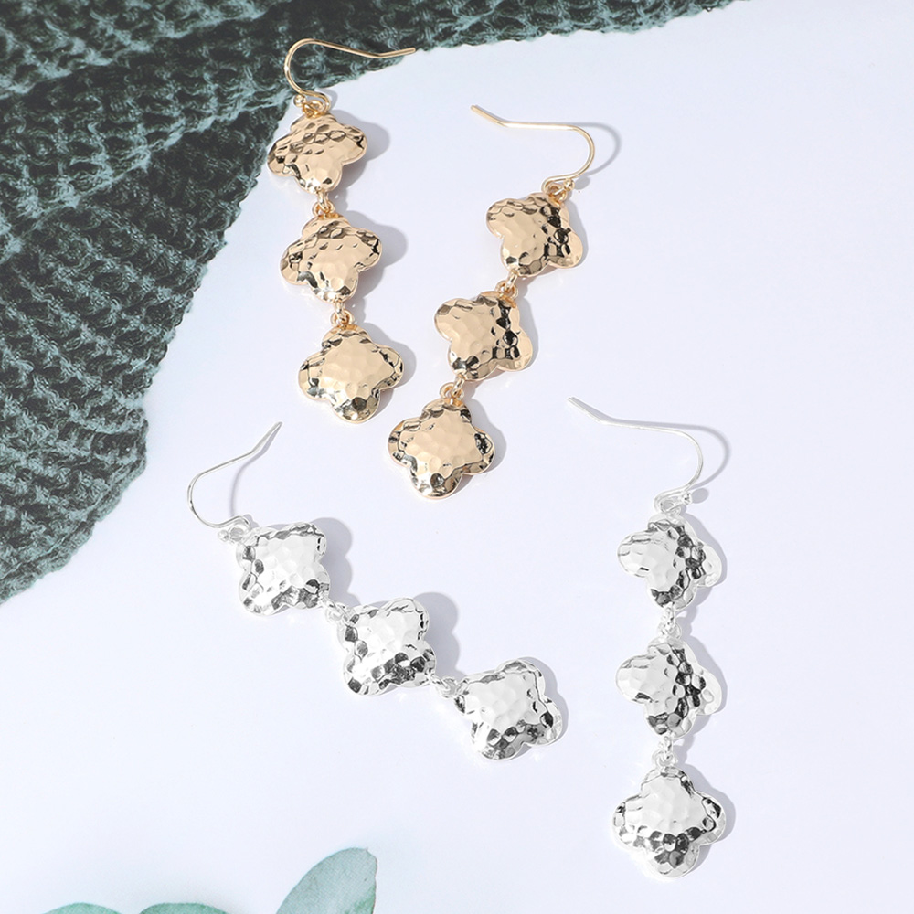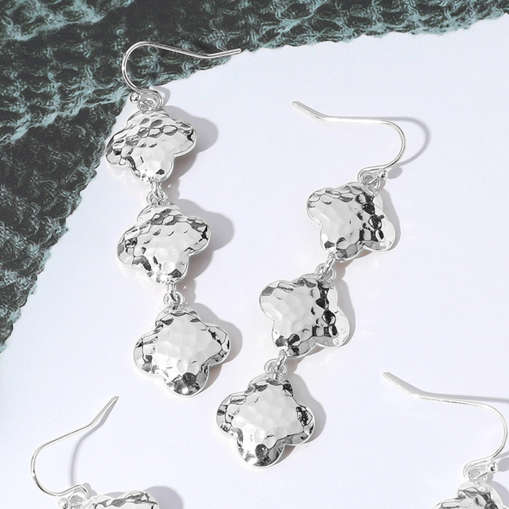 Triple Hammered Quatrefoil Link Dropdown Dangle Earrings
