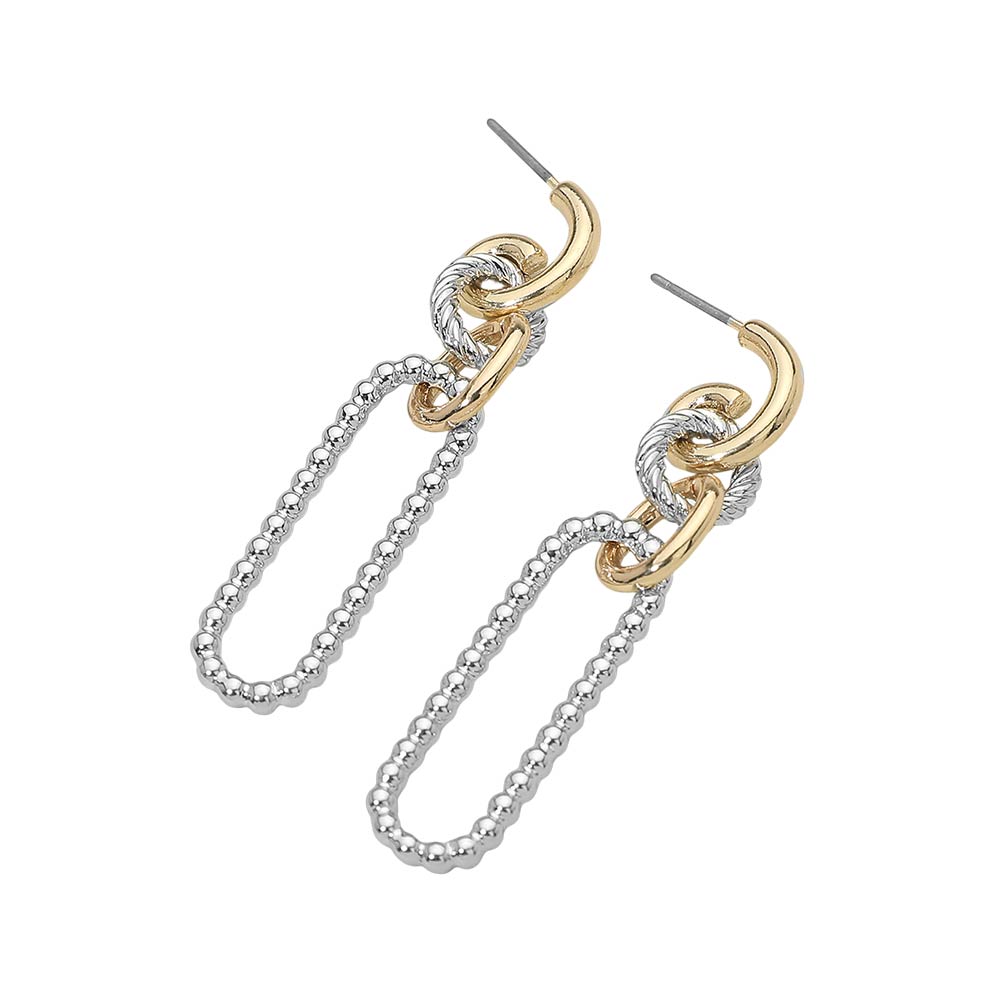 Details • Size : 0.4" X 2.2" • Post Back • Modern drop earrings designed with interlinked hoops and a beaded open drop silhouette that adds movement and dimension. A bold yet refined accessory that elevates everyday styling and pairs effortlessly with casual, work, or evening looks for versatile wear across seasons. • Lead and Nickel Compliant