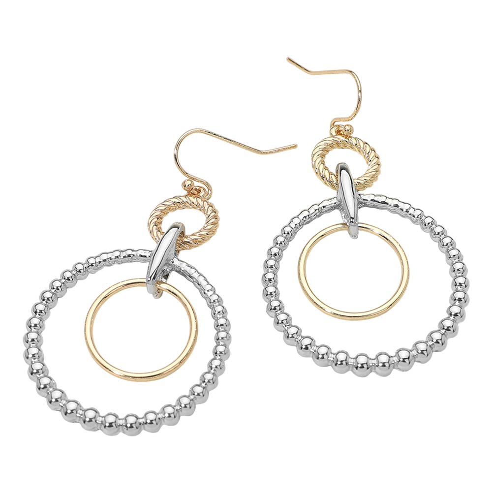 Two Tone Metal Beaded Ring Link Drop Earrings