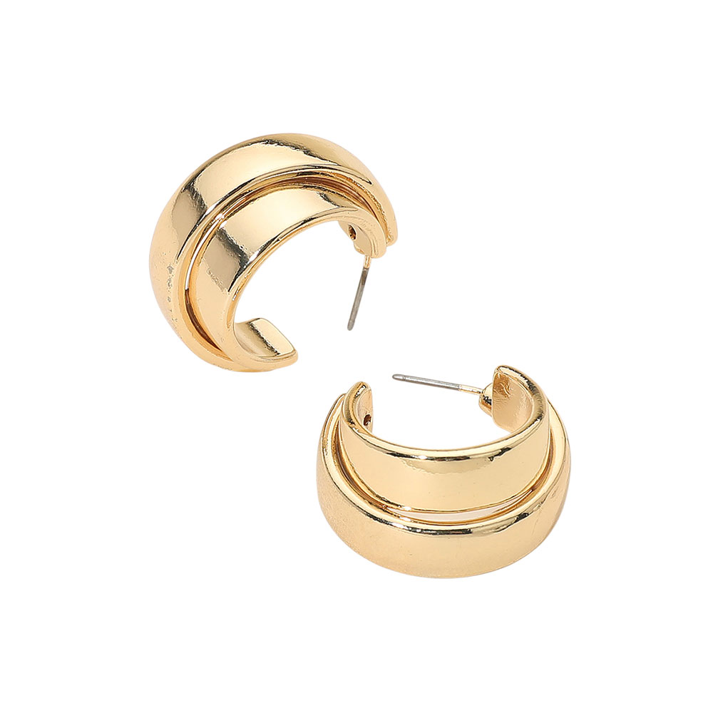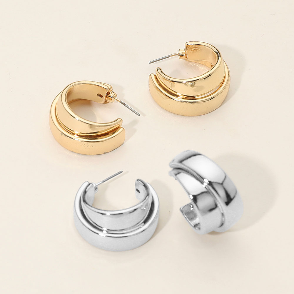 • Bold and modern, these wide hoop earrings feature a polished finish and dimensional curved design. A chic accessory to elevate both casual and formal outfits with contemporary style and striking contrast.