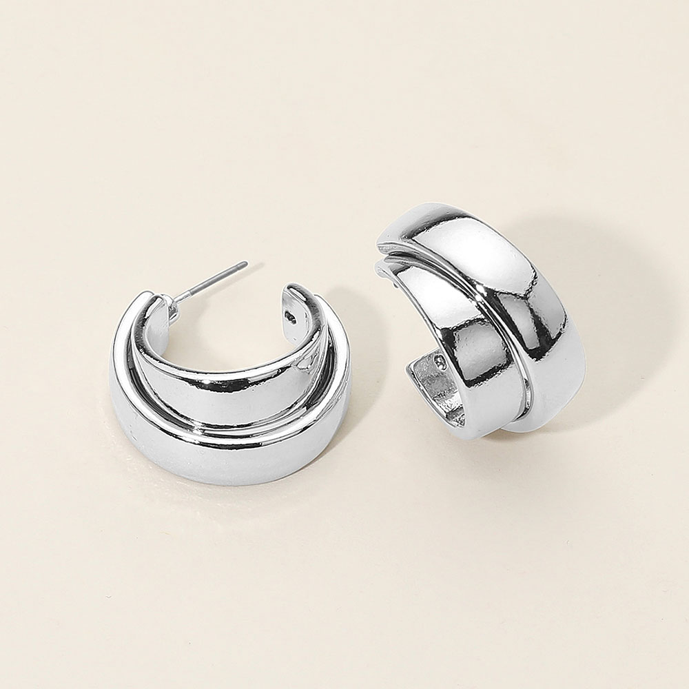 Details • Size : 1" X 1" X 0.6" • Post Back • Bold and modern, these wide hoop earrings feature a polished finish and dimensional curved design. A chic accessory to elevate both casual and formal outfits with contemporary style and striking contrast. • Lead and Nickel Compliant