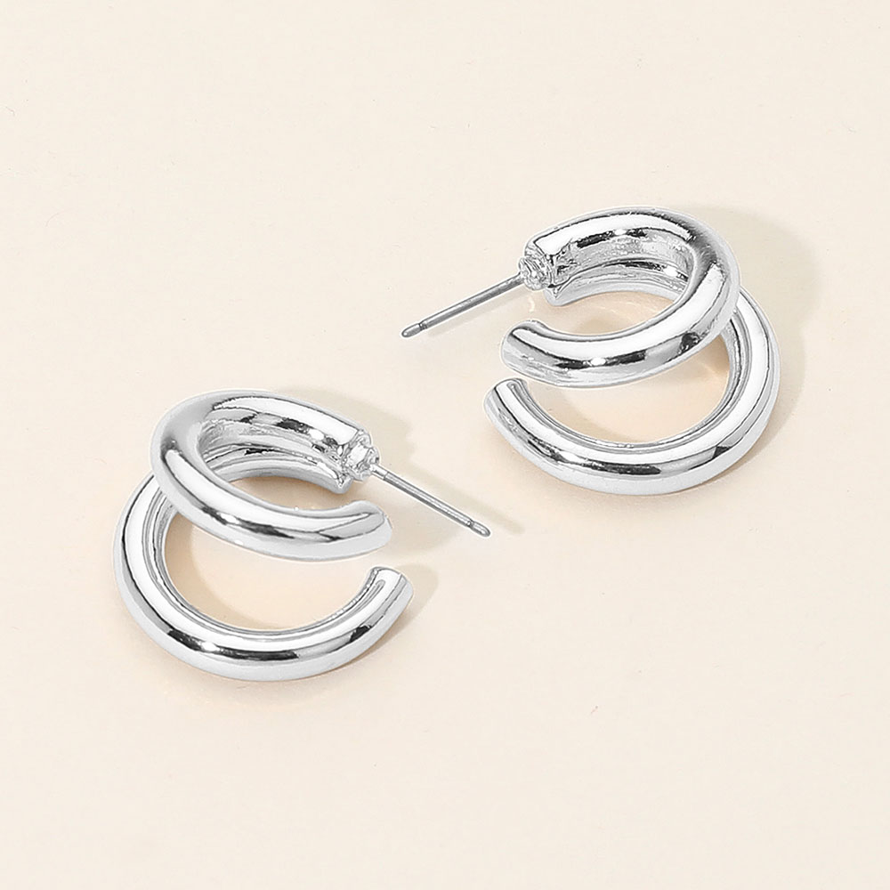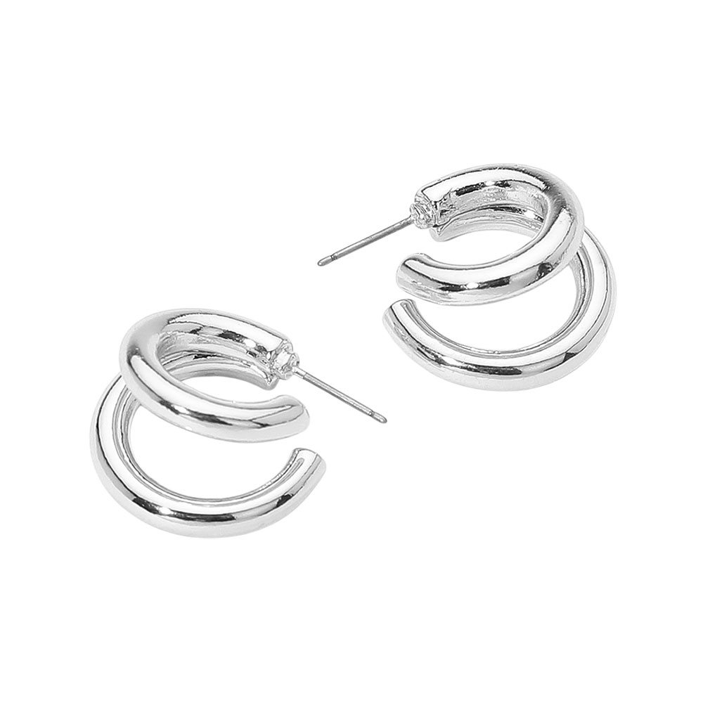 Details • Size : 0.8" X 0.8" X 0.7" • Post Back • Stylish double hoop earrings featuring a sleek design for a modern and versatile look. Ideal for everyday wear or elevating casual outfits, these earrings add a touch of effortless sophistication to any style. • Lead and Nickel Compliant