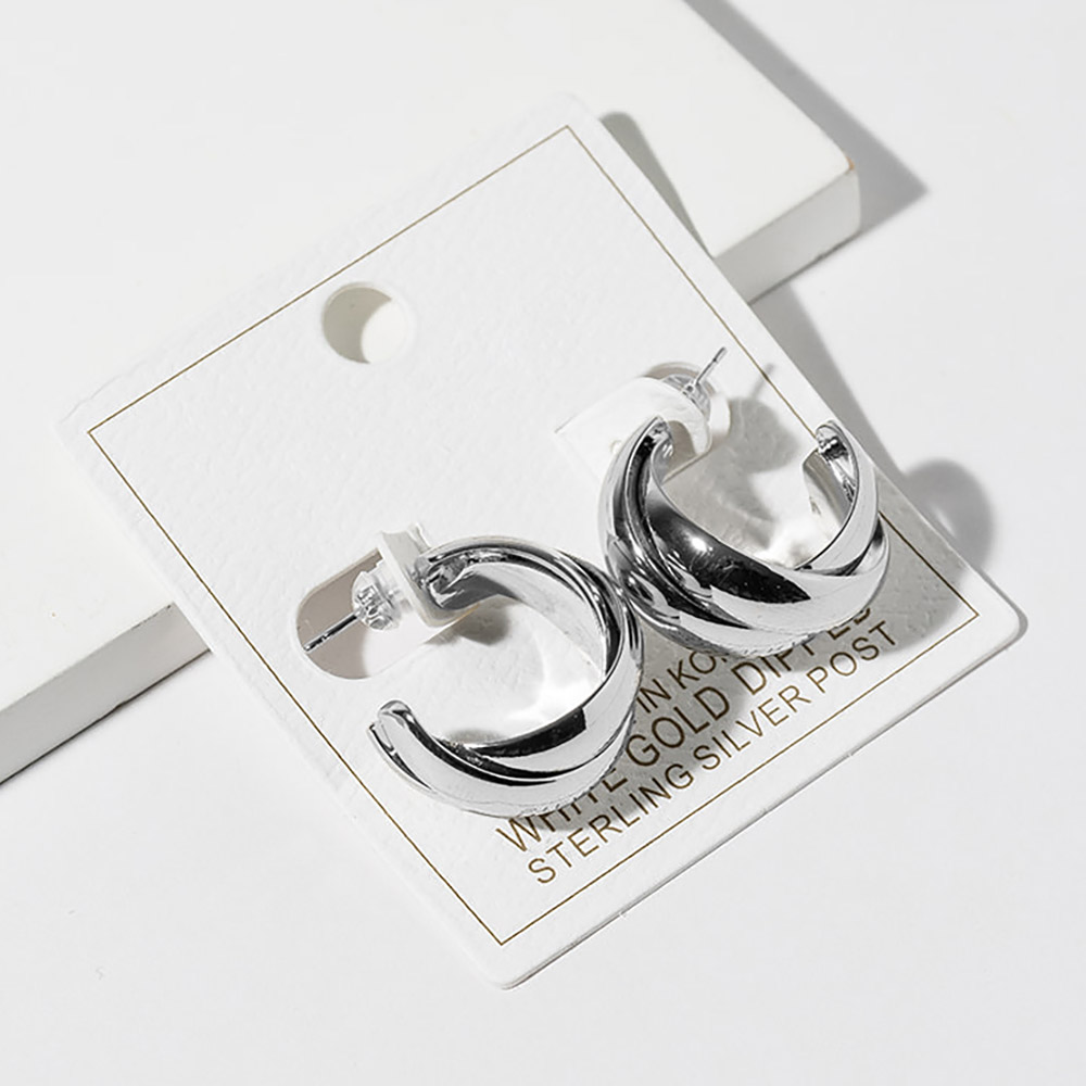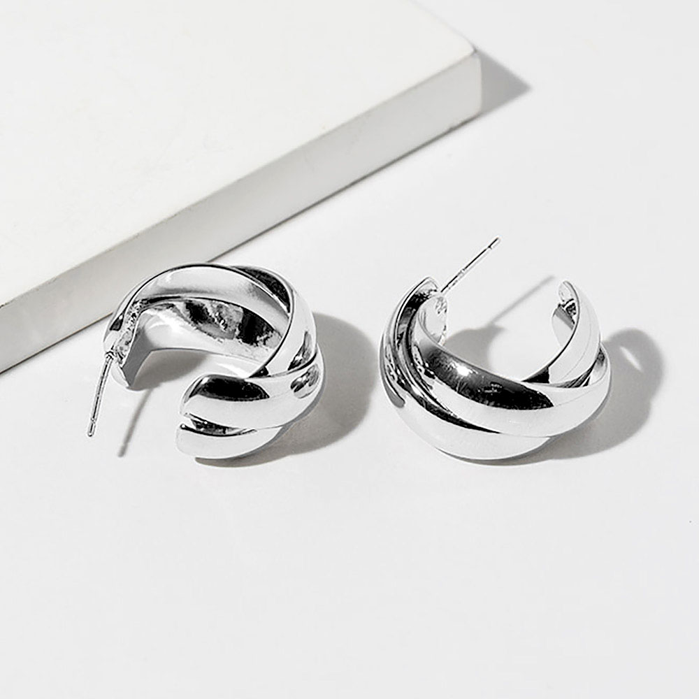 • Stylish hoop stud earrings featuring a layered curved design with smooth overlapping contours and a bold yet wearable silhouette. Perfect for everyday styling or elevated looks, these earrings deliver modern dimension, sculptural appeal, and versatile elegance that complements casual outfits, office wear, and refined fashion collections.