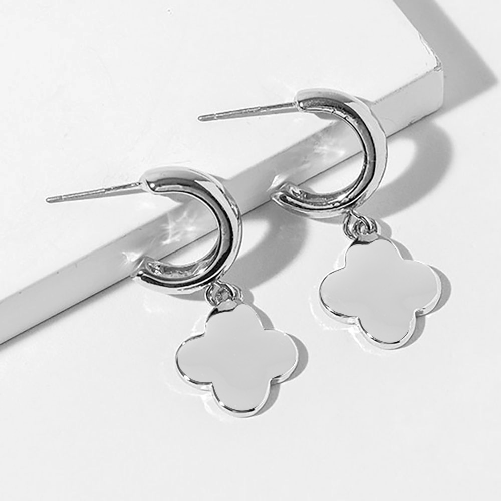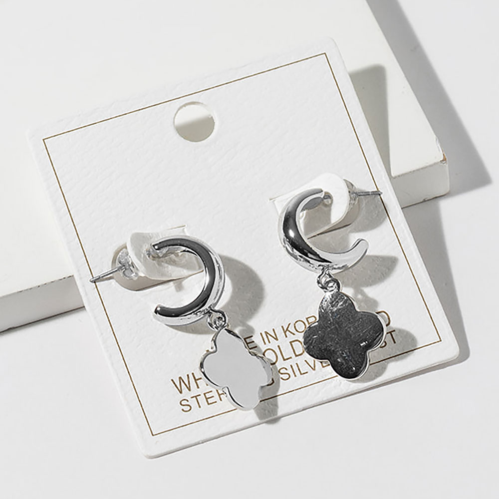 • Chic hoop drop earrings featuring a sleek quatrefoil charm silhouette for a polished, everyday-to-evening look. Designed to elevate casual outfits or complement dressy styles, these earrings offer a timeless accent ideal for gifting, seasonal collections, or effortless accessorizing.