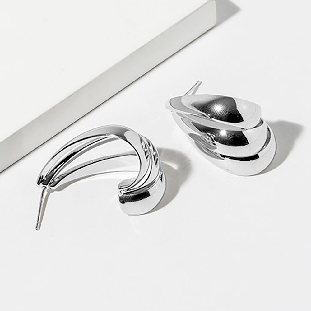 • Modern stud earrings featuring a sculpted teardrop silhouette with layered curved detailing and a smooth polished finish. Designed to elevate everyday looks and refined outfits, these statement studs offer dimensional style, elegant contours, and versatile appeal, making them a standout addition to any contemporary jewelry collection.