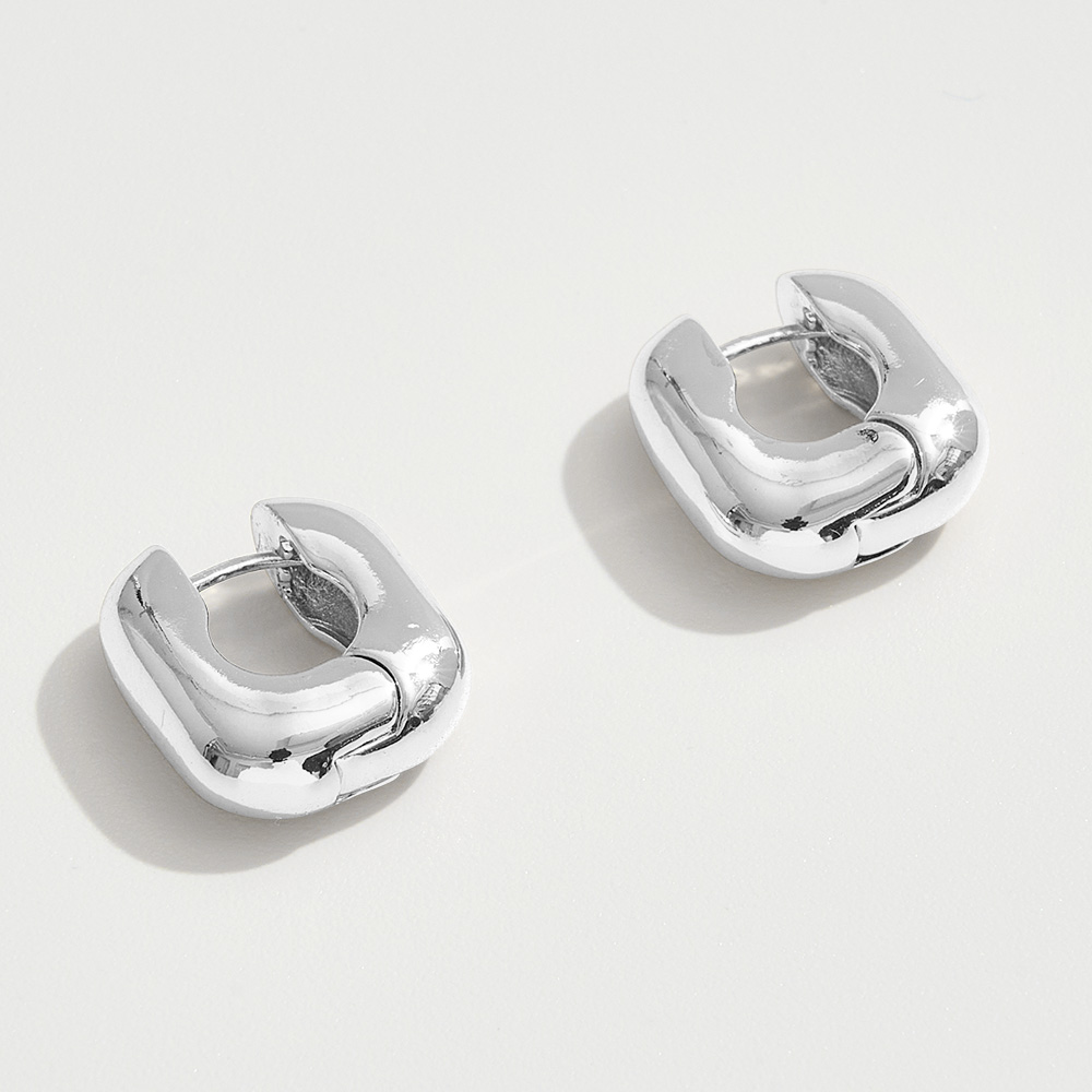 Details • Size : 0.6" X 0.7" • Huggie Back • These chunky square hoop earrings feature a bold geometric silhouette with a smooth, polished finish for a modern twist on classic hoops. Their sculptural shape adds edge and elegance, making them a versatile statement piece for both casual and elevated looks. • Brass • Gold Dipped • Hypoallergenic • Lead and Nickel Compliant • Made In Korea