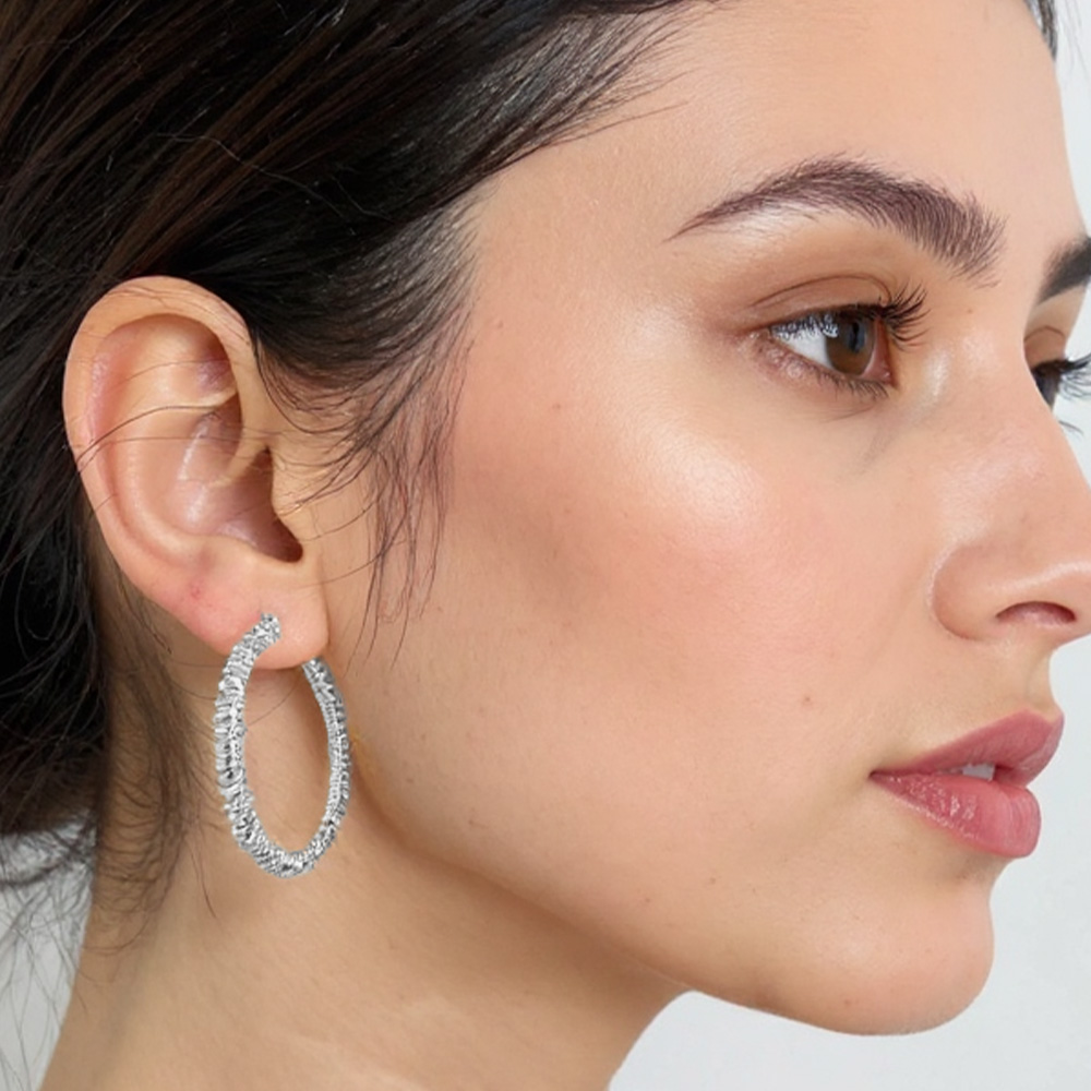 White Gold Dipped Textured Hoop Earrings White Gold Dipped Textured Hoop Earrings White Gold Dipped Textured Hoop Earrings