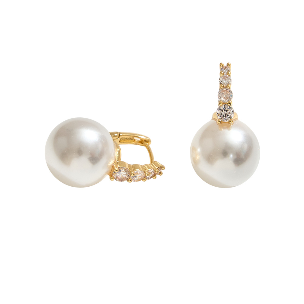 Details • Size : 0.7" X 1" • Hugie Back • These graceful drop earrings feature a lustrous pearl suspended from a line of sparkling stones, blending timeless charm with modern elegance. Perfect for weddings, evening events, or everyday sophistication, they add a refined touch to any jewelry collection. • Brass • CZ Cubic Zirconia • Gold Dipped • Hypoallergenic • Lead and Nickel Compliant • Made In Korea