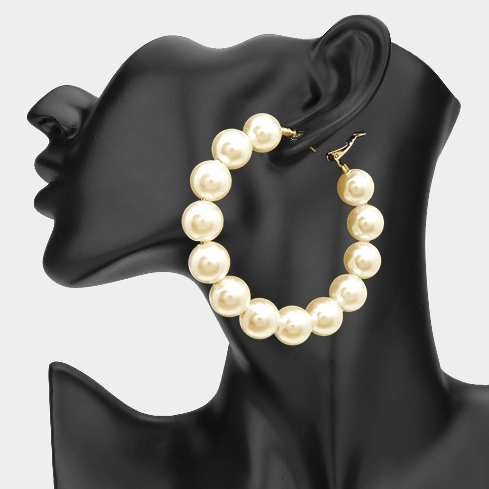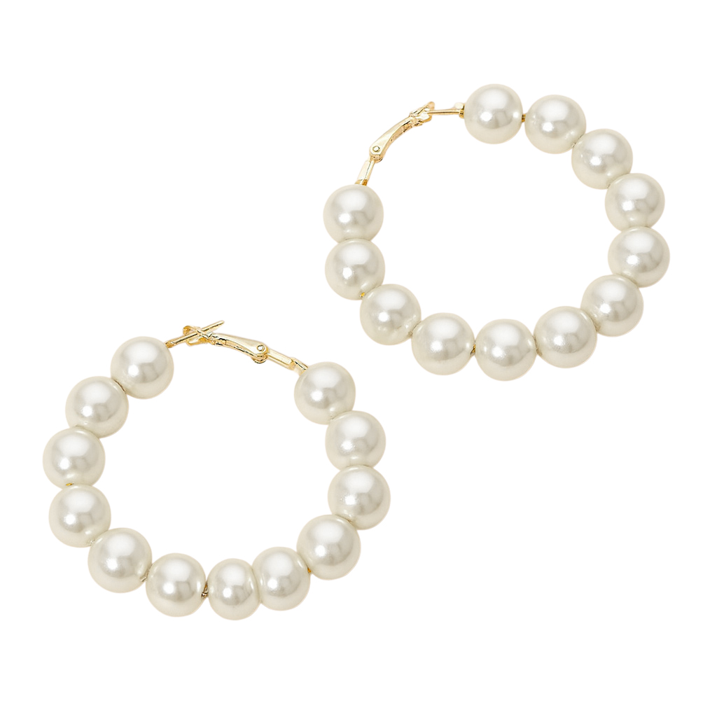 Details • Size : 2.75" X 2.75" • Omega Back • Elegant hoop earrings adorned with smooth round beads in a polished design. Lightweight and refined, these versatile earrings add timeless charm to both casual and dressy looks. • Lead and Nickel Compliant