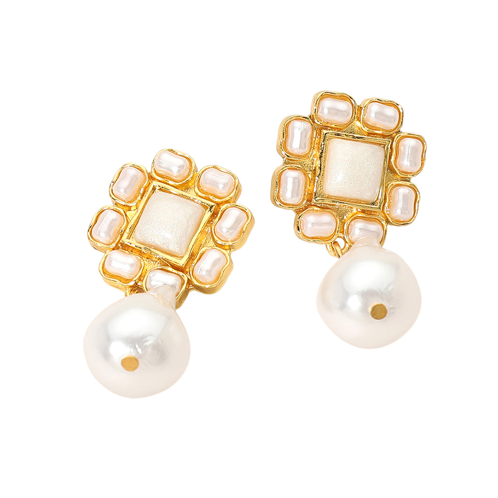 • These pearl drop square stud earrings feature a refined geometric design with a soft drop detail for added movement. Ideal for everyday wear or special occasions, they offer a balanced look that feels elegant yet wearable, making them easy to style with casual outfits, work looks, or dressy ensembles.