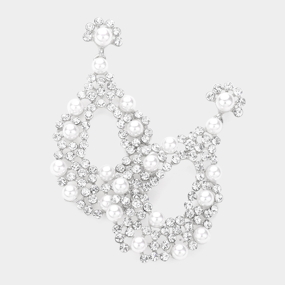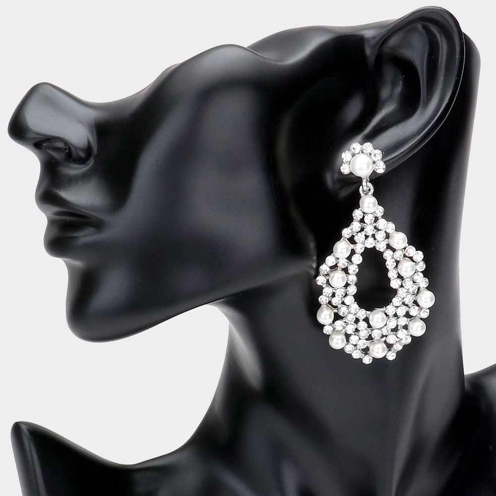 Pearl Detail Rhinestone Open Teardrop Evening Earrings