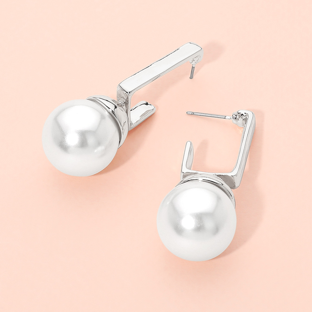 Details • Size : 0.75" X 1.8" • Post Back • These modern pearl drop earrings pair a bold spherical accent with a sleek geometric hook, creating a refined yet contemporary silhouette. Their eye-catching design adds effortless elegance to any look, making them an ideal choice for both polished daytime style and elevated evening wear. • Lead and Nickel Compliant • Hypoallergenic
