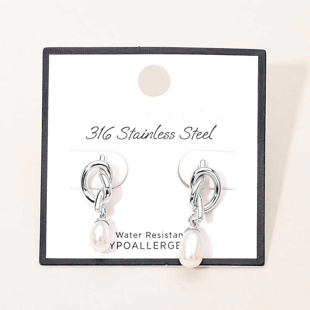 SECRET BOX_Stainless Steel Knot Pearl Drop Earrings