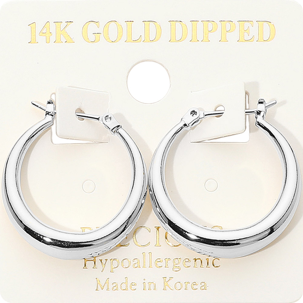 Details • Size : 1" X 1" • Pin Catch • Elevate your daily look with these classic rounded hoop earrings featuring a smooth, polished profile and clean modern design. Lightweight and versatile, they transition effortlessly from casual wear to evening outfits, delivering understated style and long-lasting wear comfort. • Gold Dipped • Hypoallergenic • Made In Korea